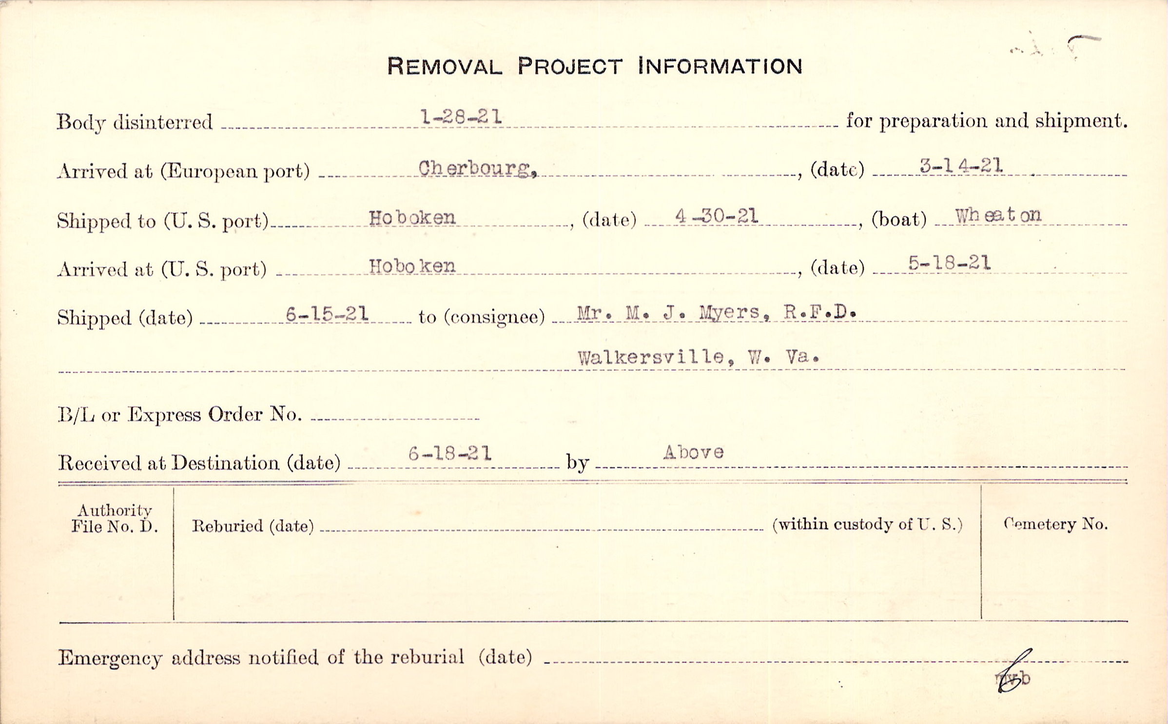 to Mr. M.J. Myers, R.F.D., Walkersville, W. Va.