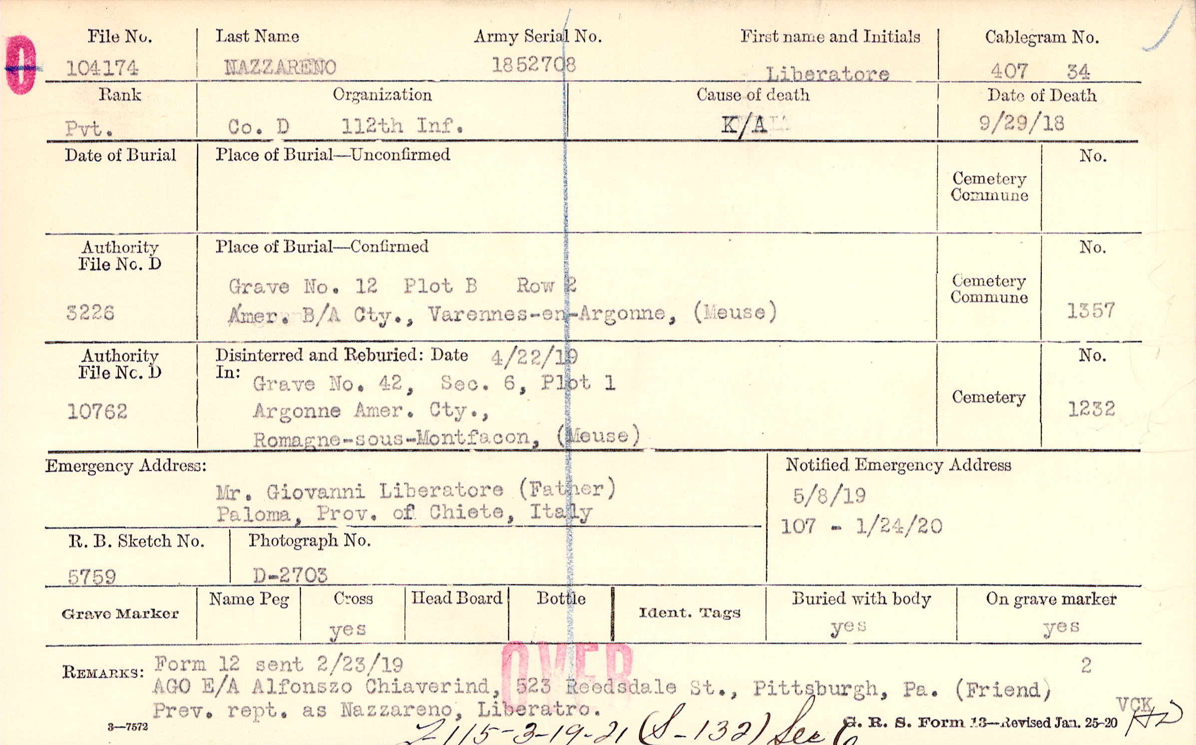 Grave 12, Plot B, Row 2, Amer. B/A Cty., Varennes-en-Argonne, Meuse