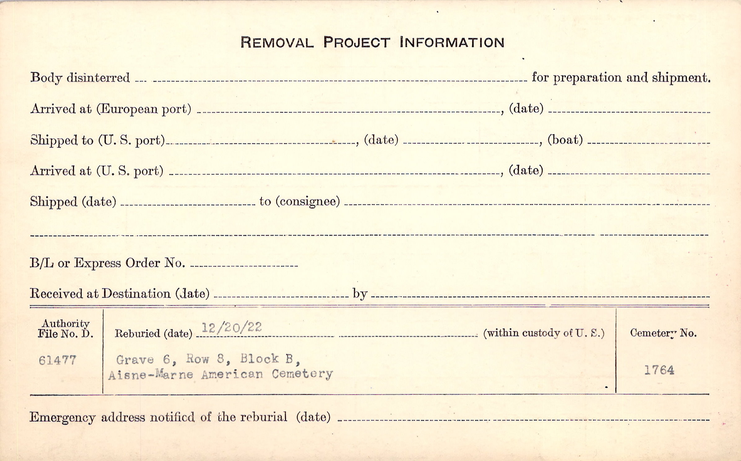 Grave # 226, Plot #15, Row #2, Amer. Cty., Clermont-Ferrand, Puy-de-Dome