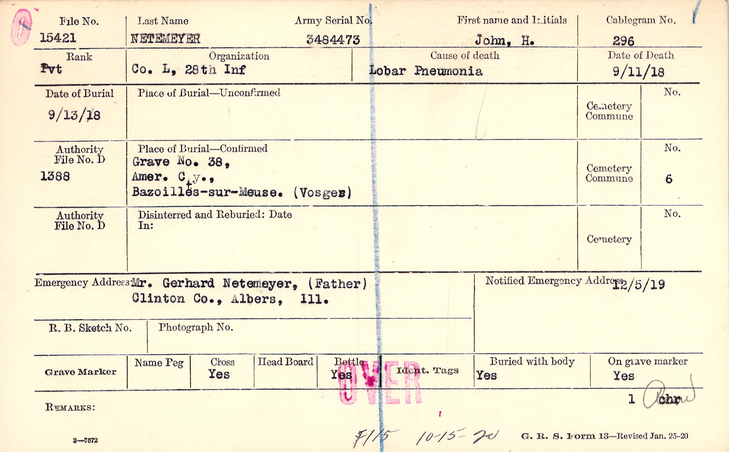 Mr. Gerhard Netemeyer, (Father), Clinton Co., Albers, Ill.