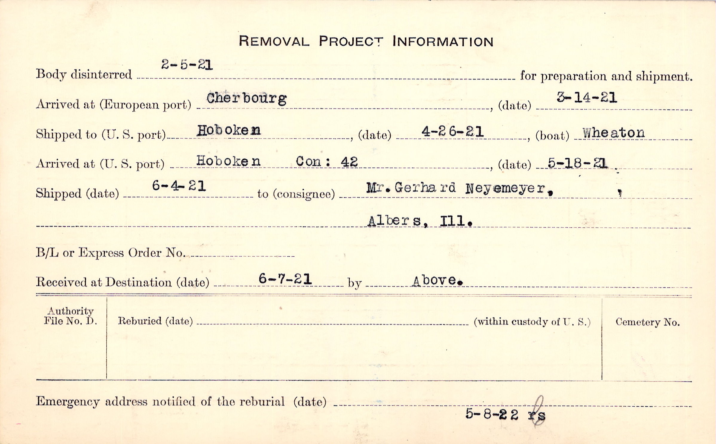 to Mr. Gerhard Neyemeyer, Albers, Ill.