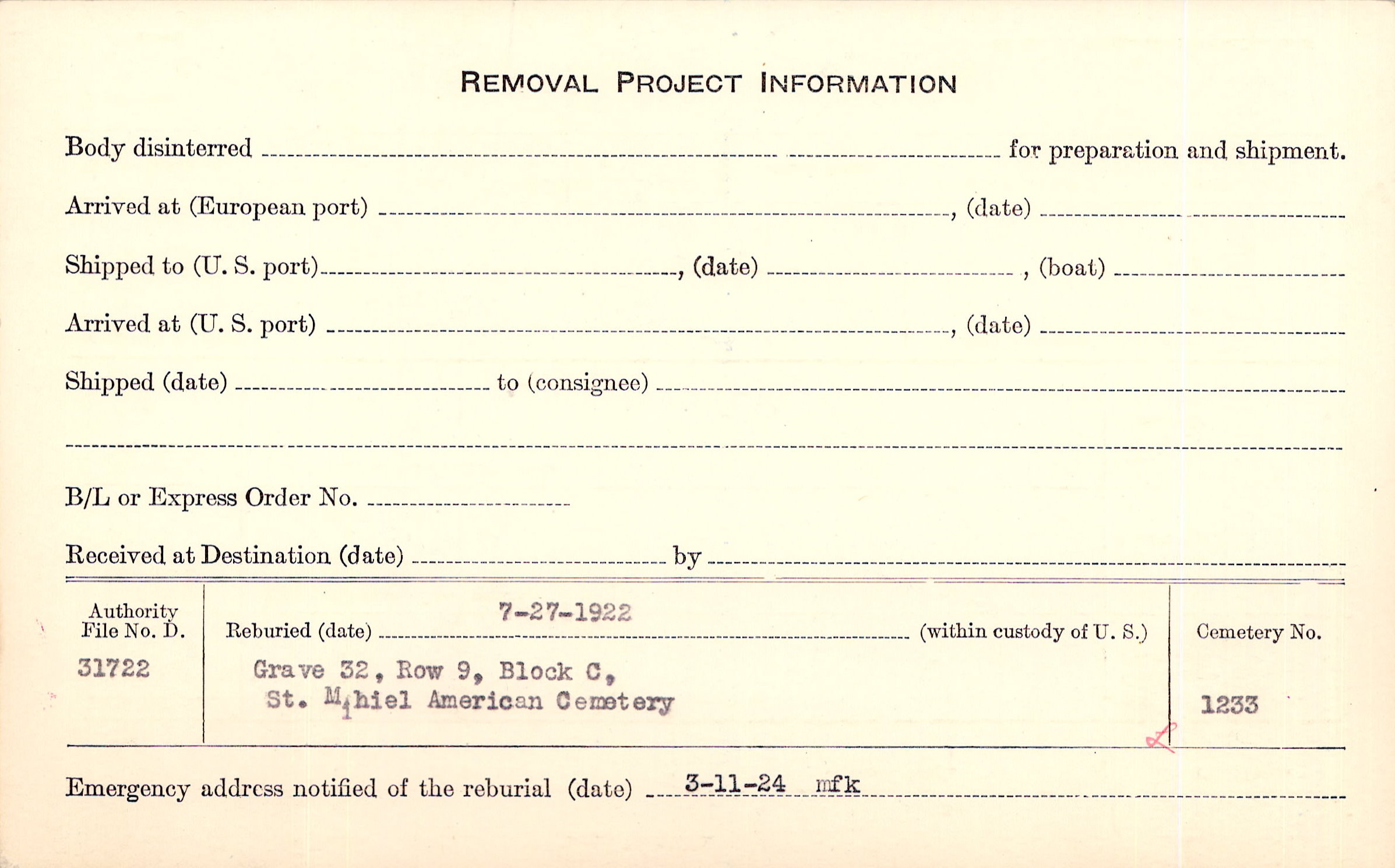 Grave 166, Section 10, Plot 4, St. Mihiel American Cemetery, Thiaucourt, Meurthe-et-Moselle