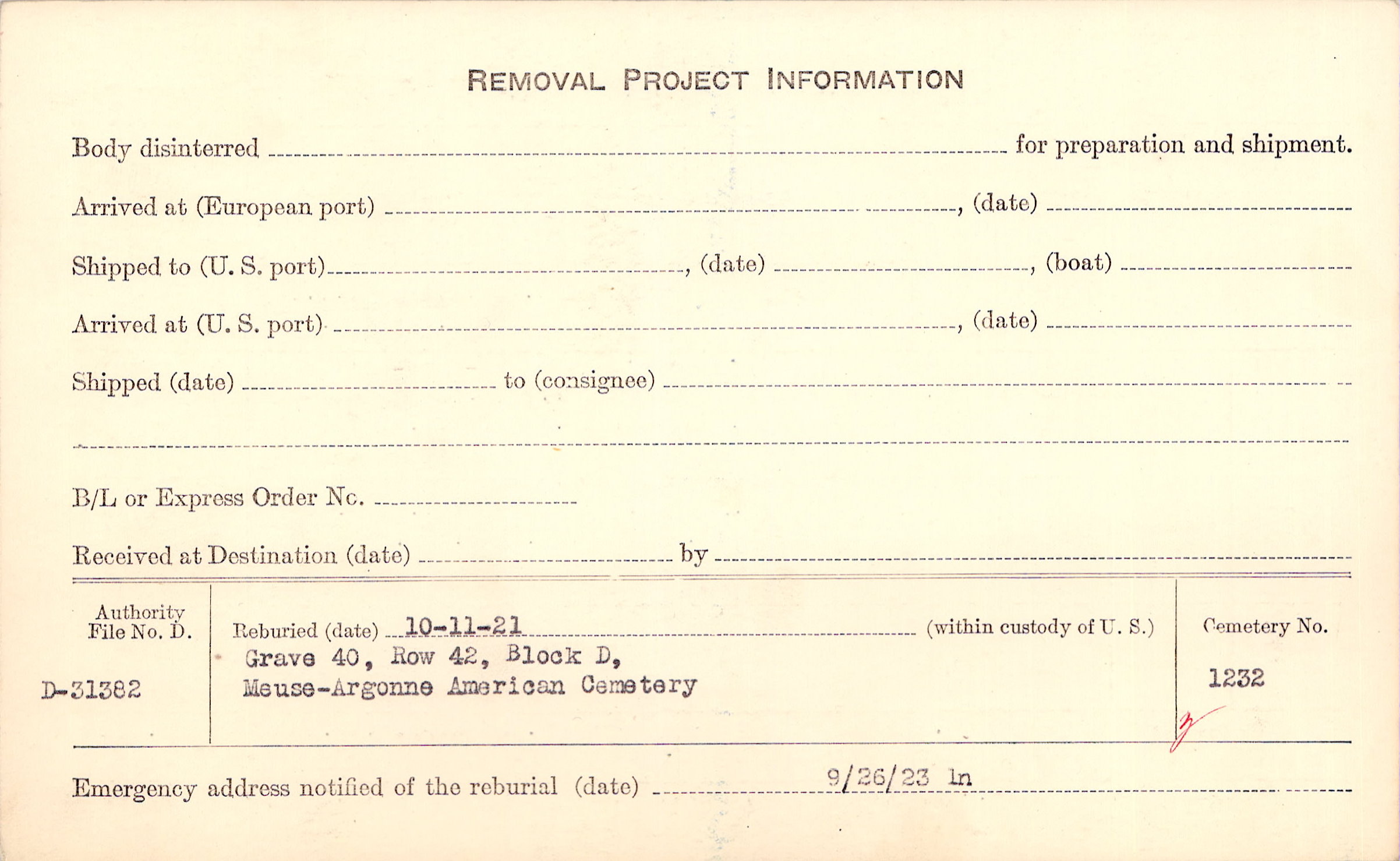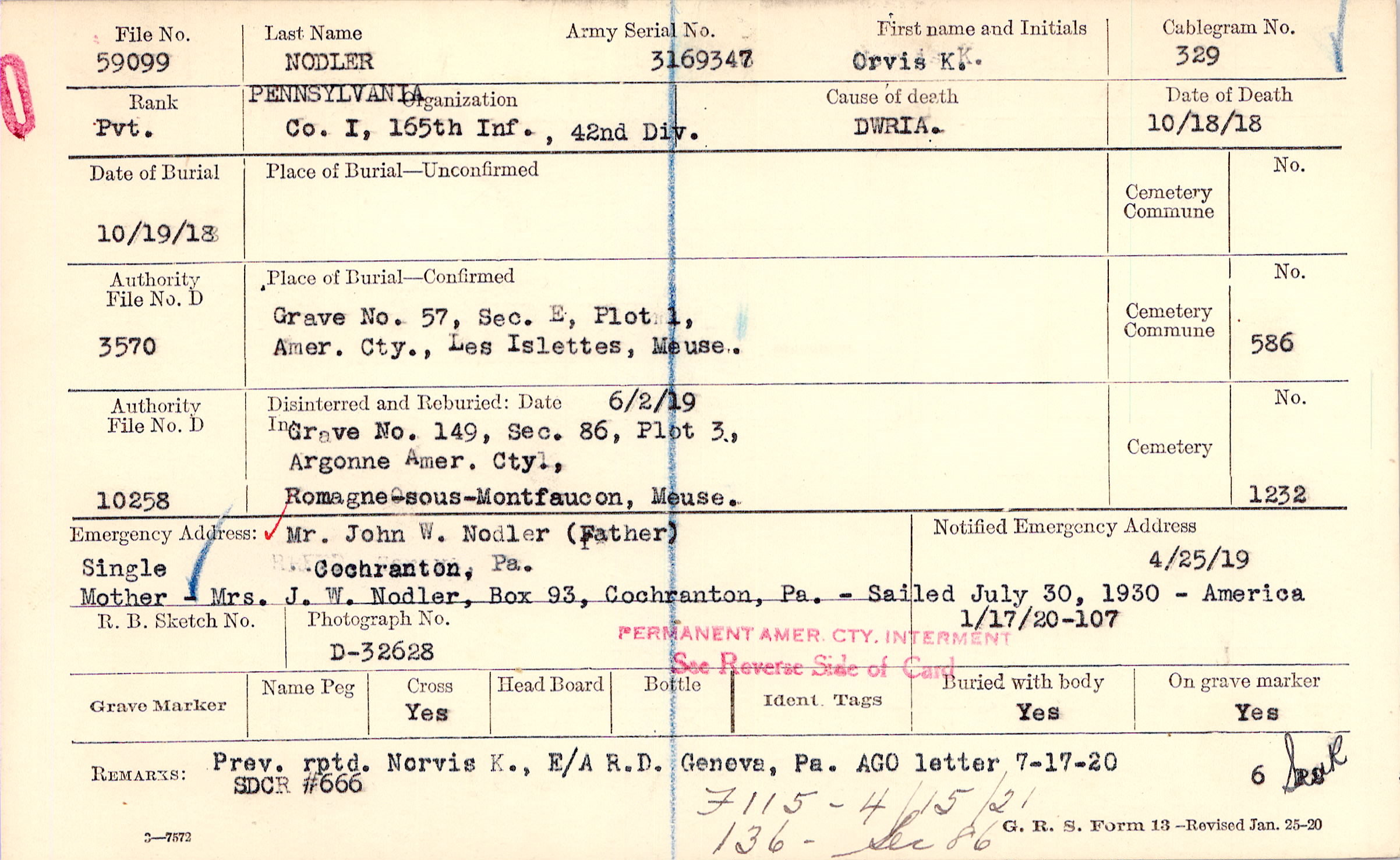 Grave 57, Sec. E, Plot 1, Amer. Cty., Les Islettes, Meuse.