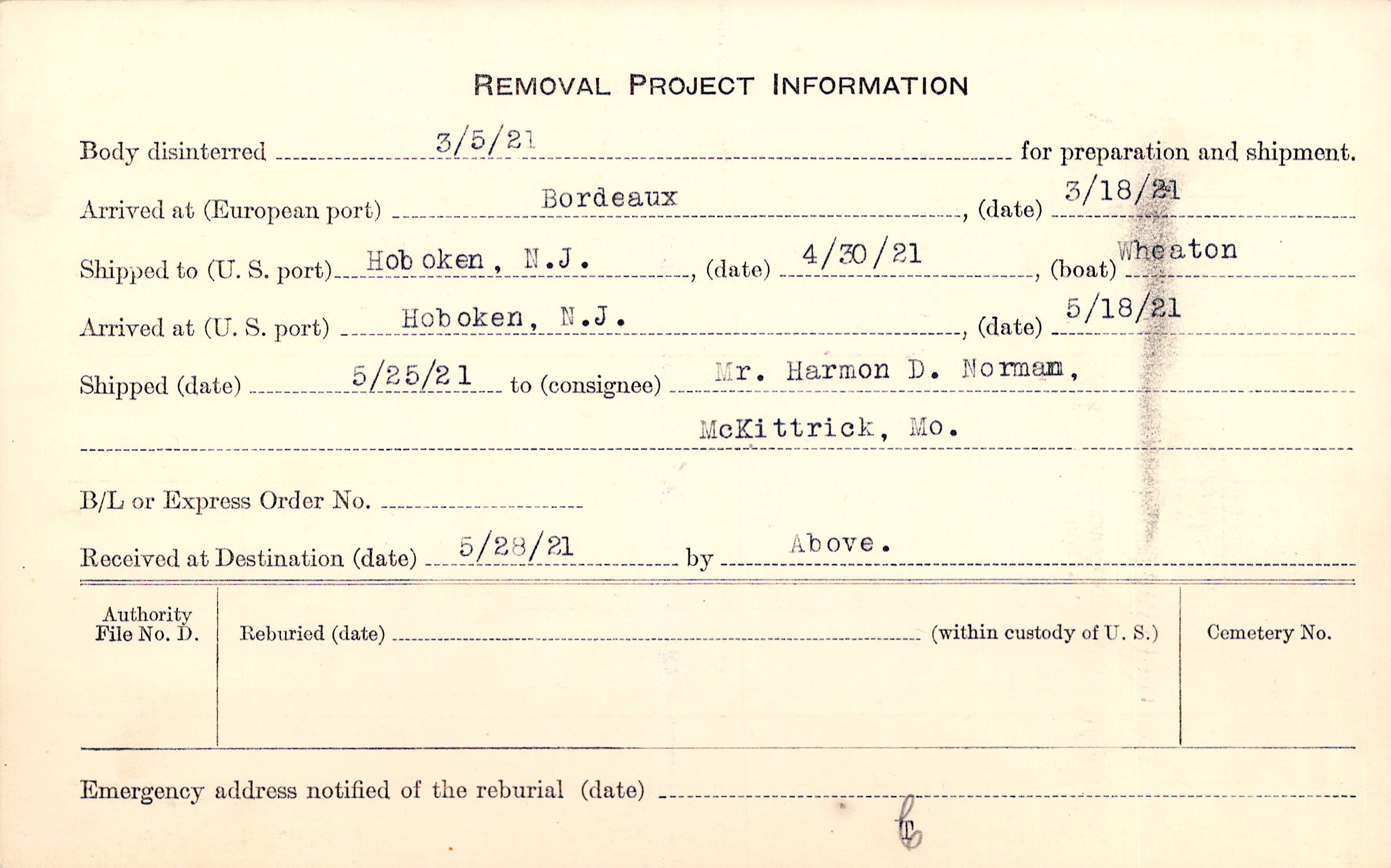 to Mr. Harmon D. Norman, McKittrick, Mo.