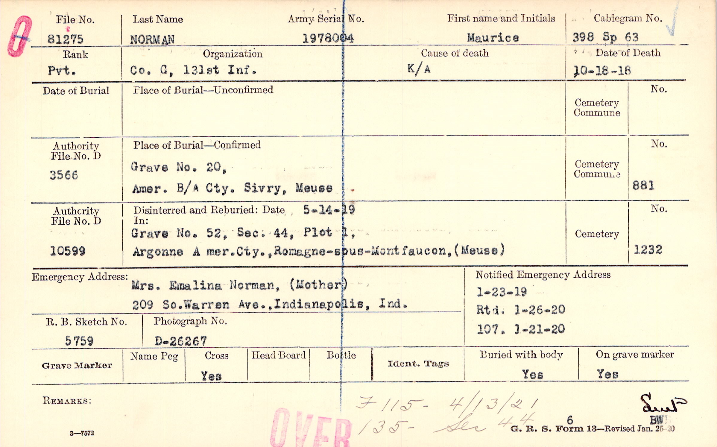Grave 20, Amer. B/A Cty., Sivry, Meuse