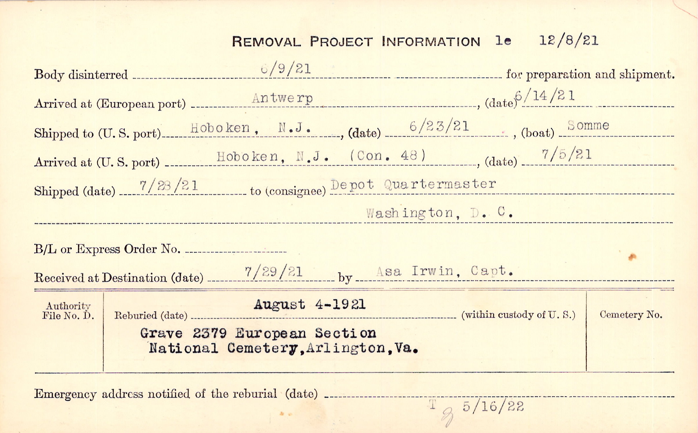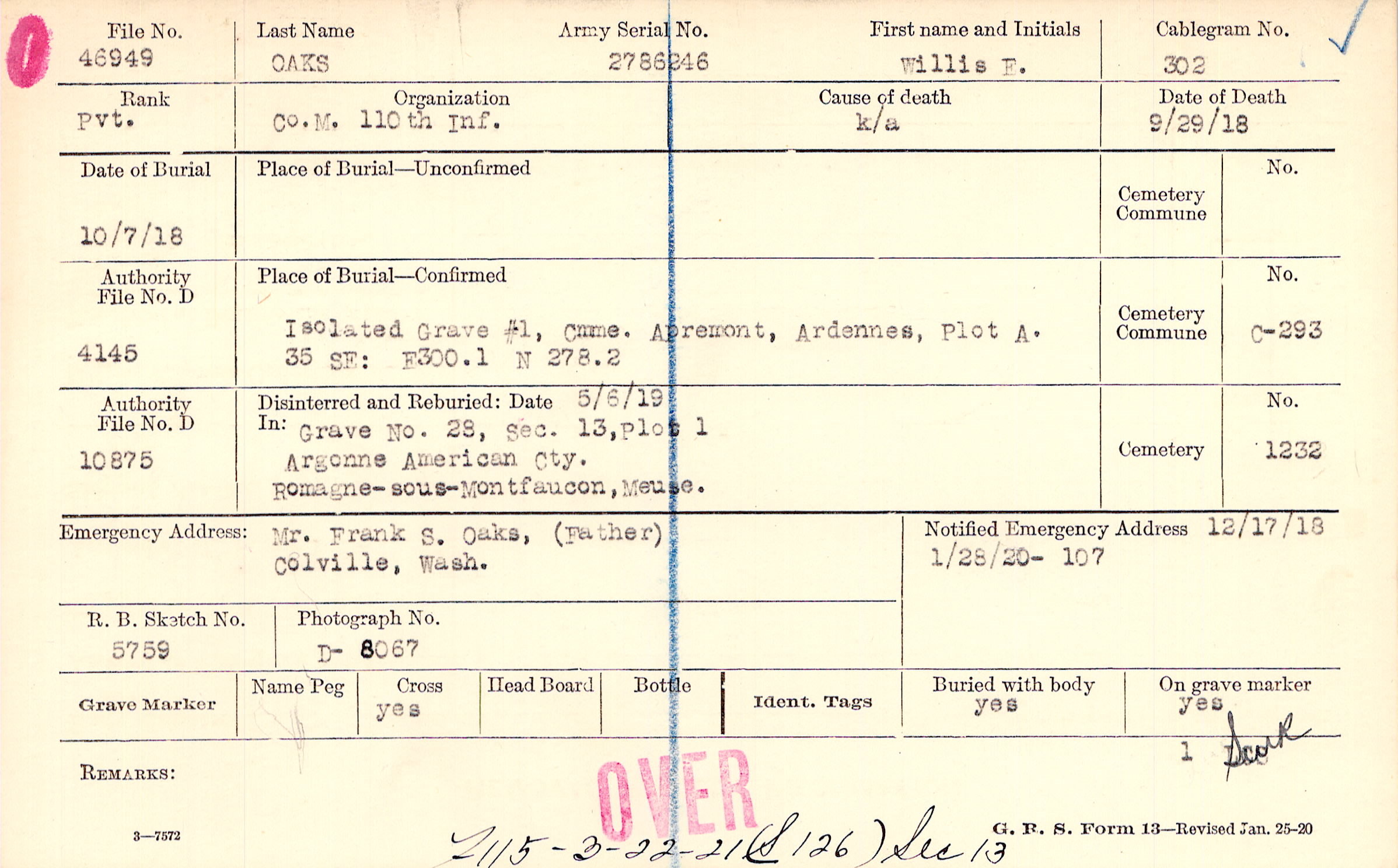 Isolated, Grave #1, Cmme. Apremont, Ardennes, Plot A, 35 SE