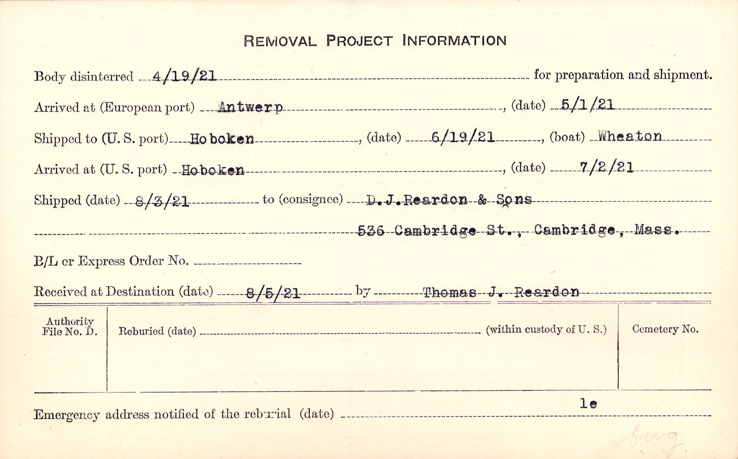 to D.J. Reardon & Sons, 536 Cambridge St., Cambridge, Mass.