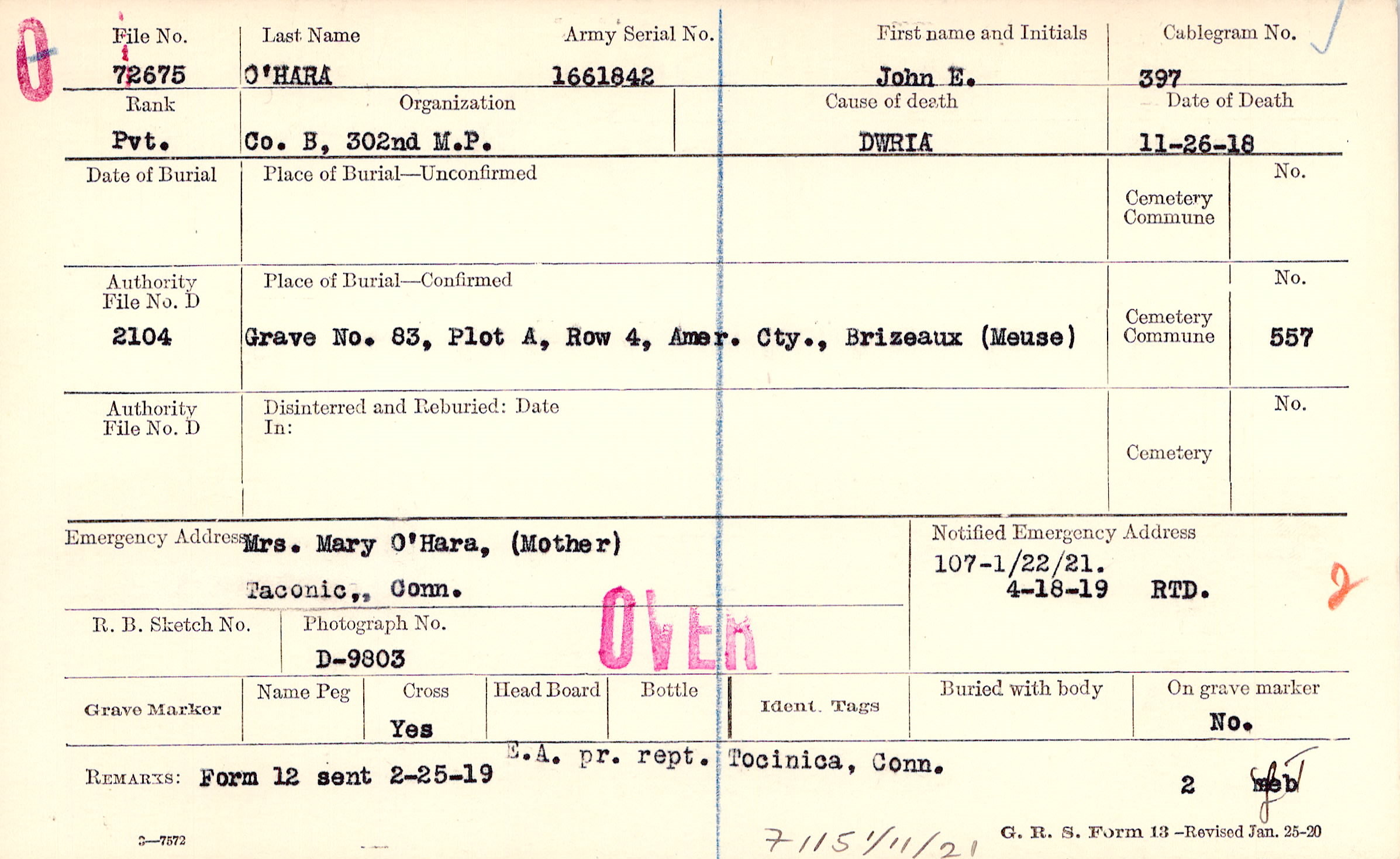 Form 107: 1/22/19 Form 21: , 4/18/1919 RTD