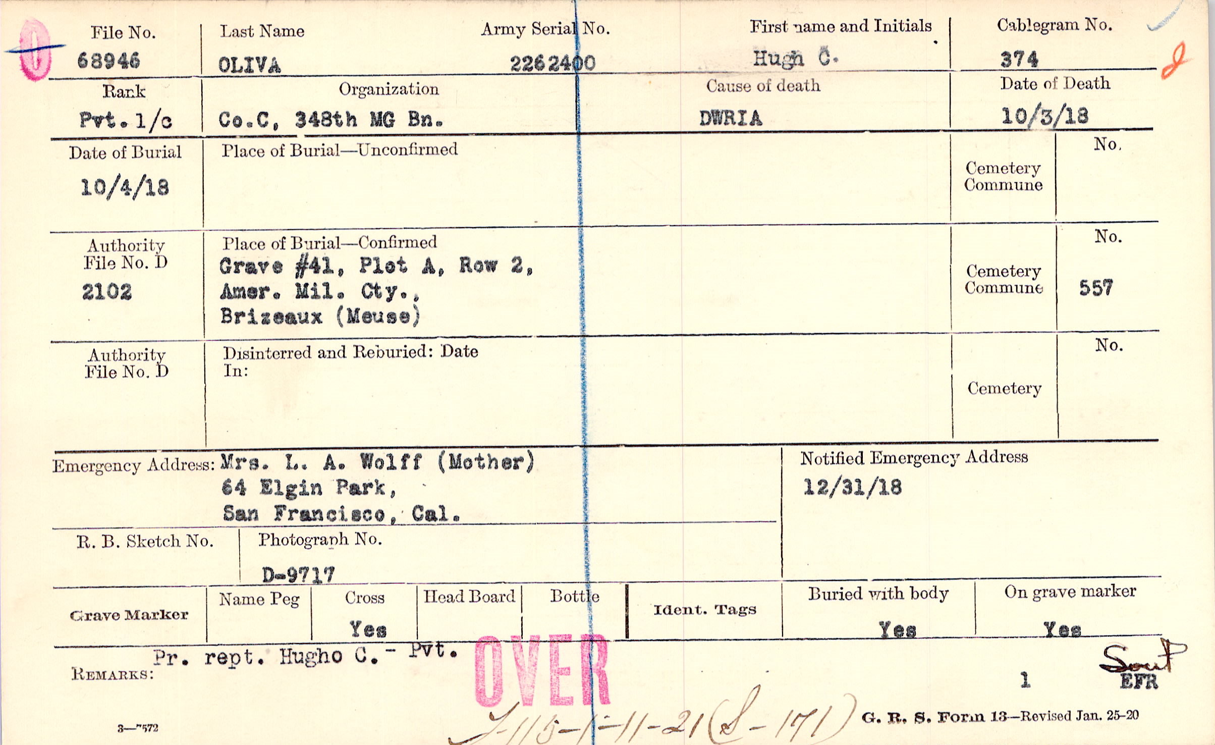 Mrs. L. A. Wolff (Mother), 64 Elgin Park, San Francisco, Cal.