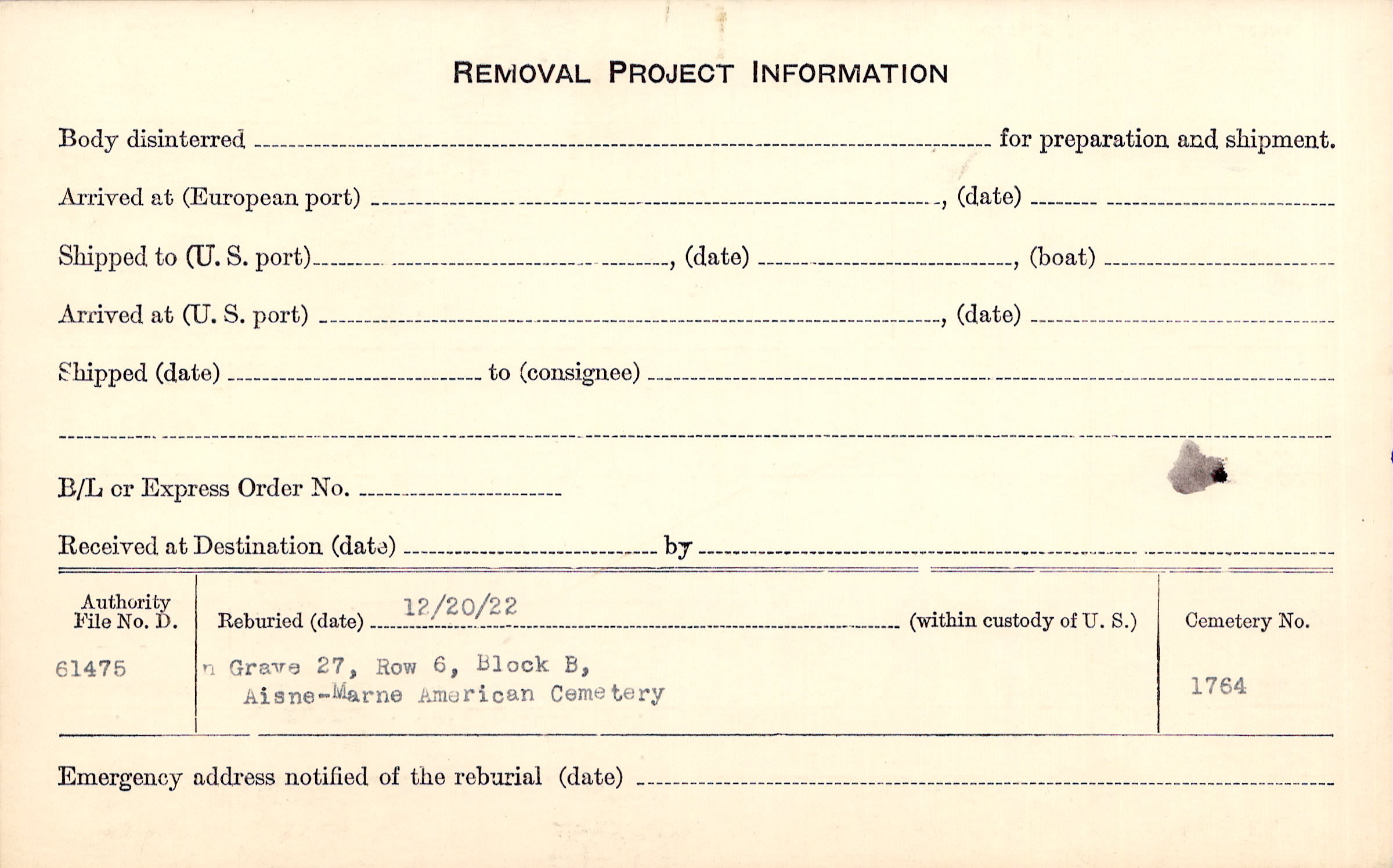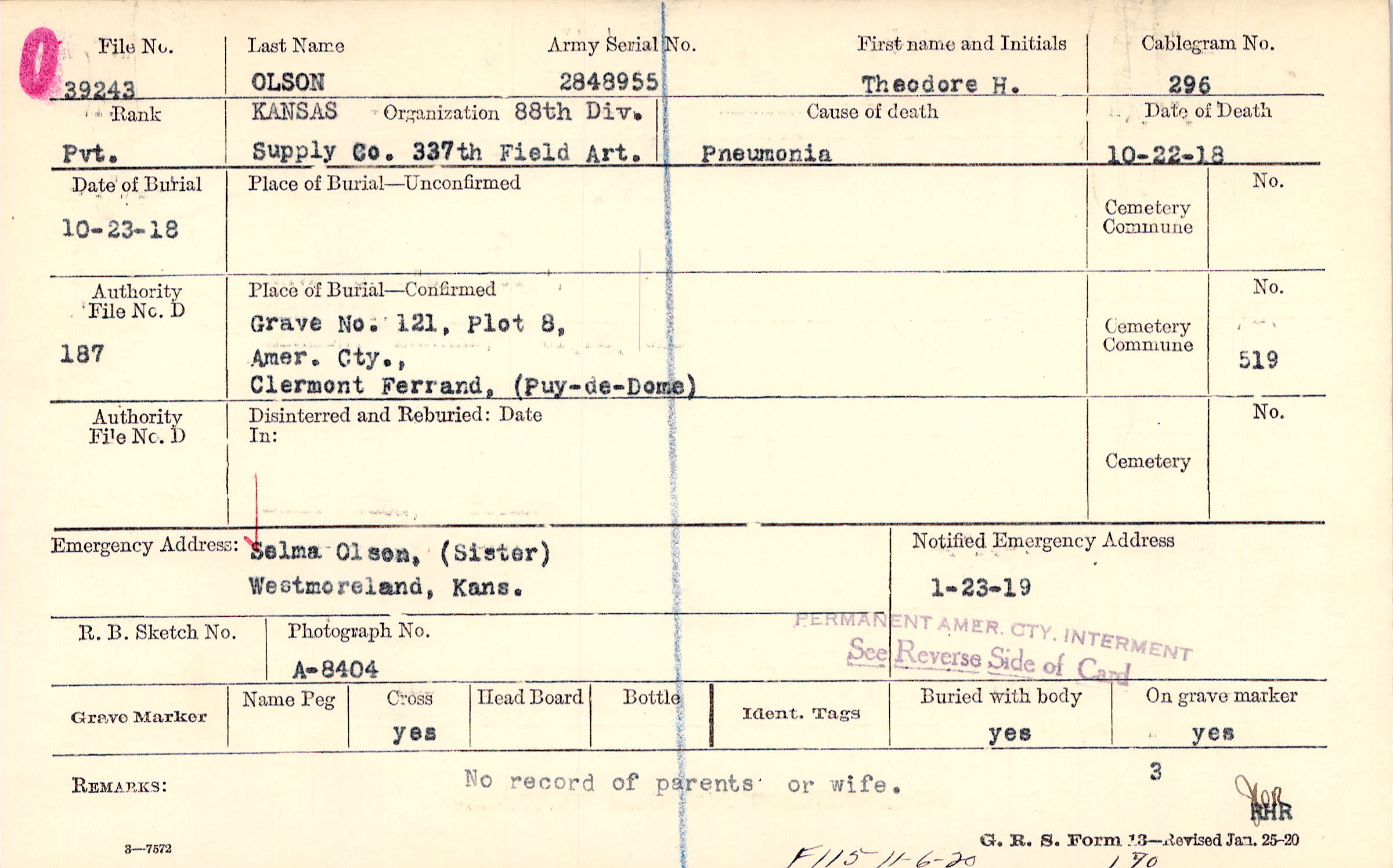 Grave 121, Plot 8, Amer. Cty., Clermont Ferrand, Puy-de-Dome