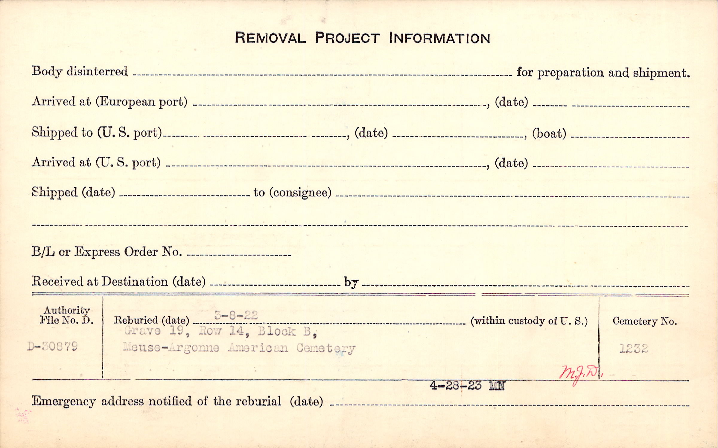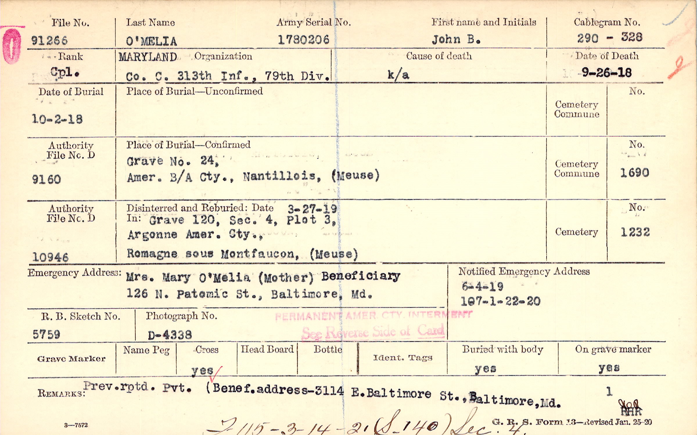 Grave 24, Amer. B/A Cty., Nantillois, Meuse