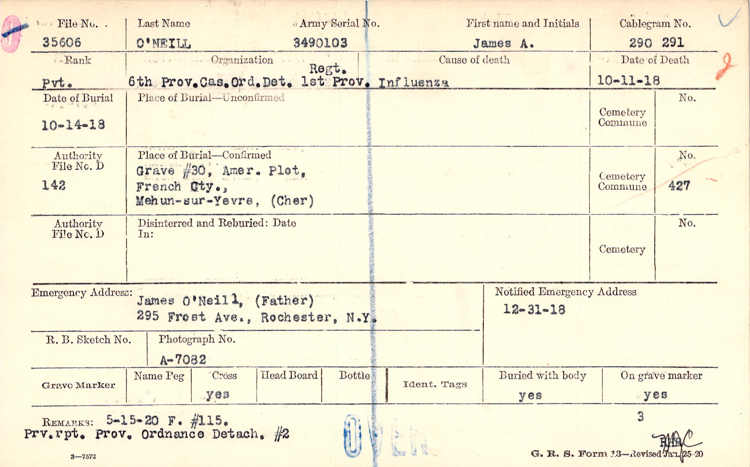 Grave #30, Amer. Plot, French Cty., Mehun-sur-Yevre, Cher
