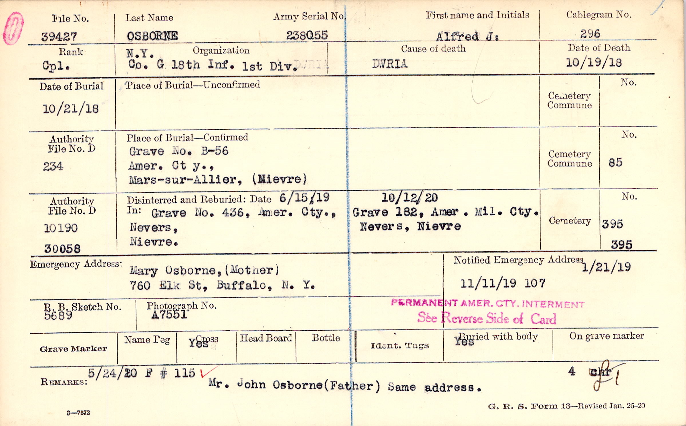 Mary Osborne, (Mother), 760 Elk St., Buffalo, N. Y.