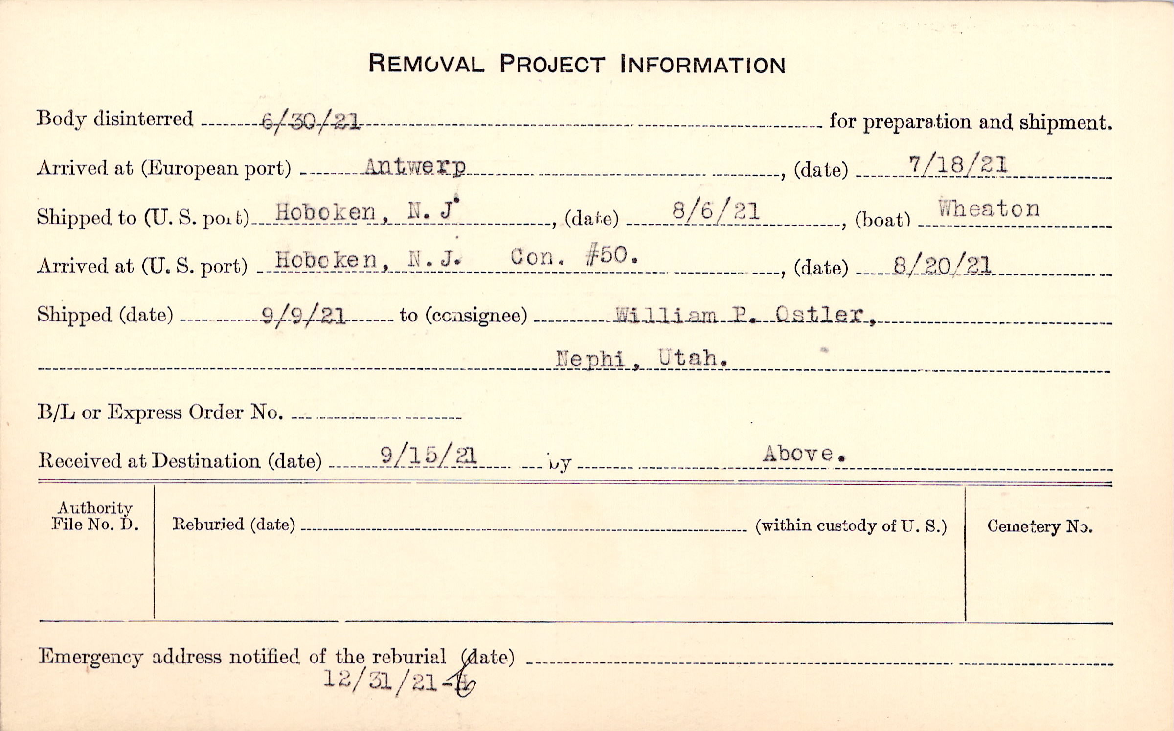 1/22/1919, Form 107: 5/25/1920, Renot 6/2/1919