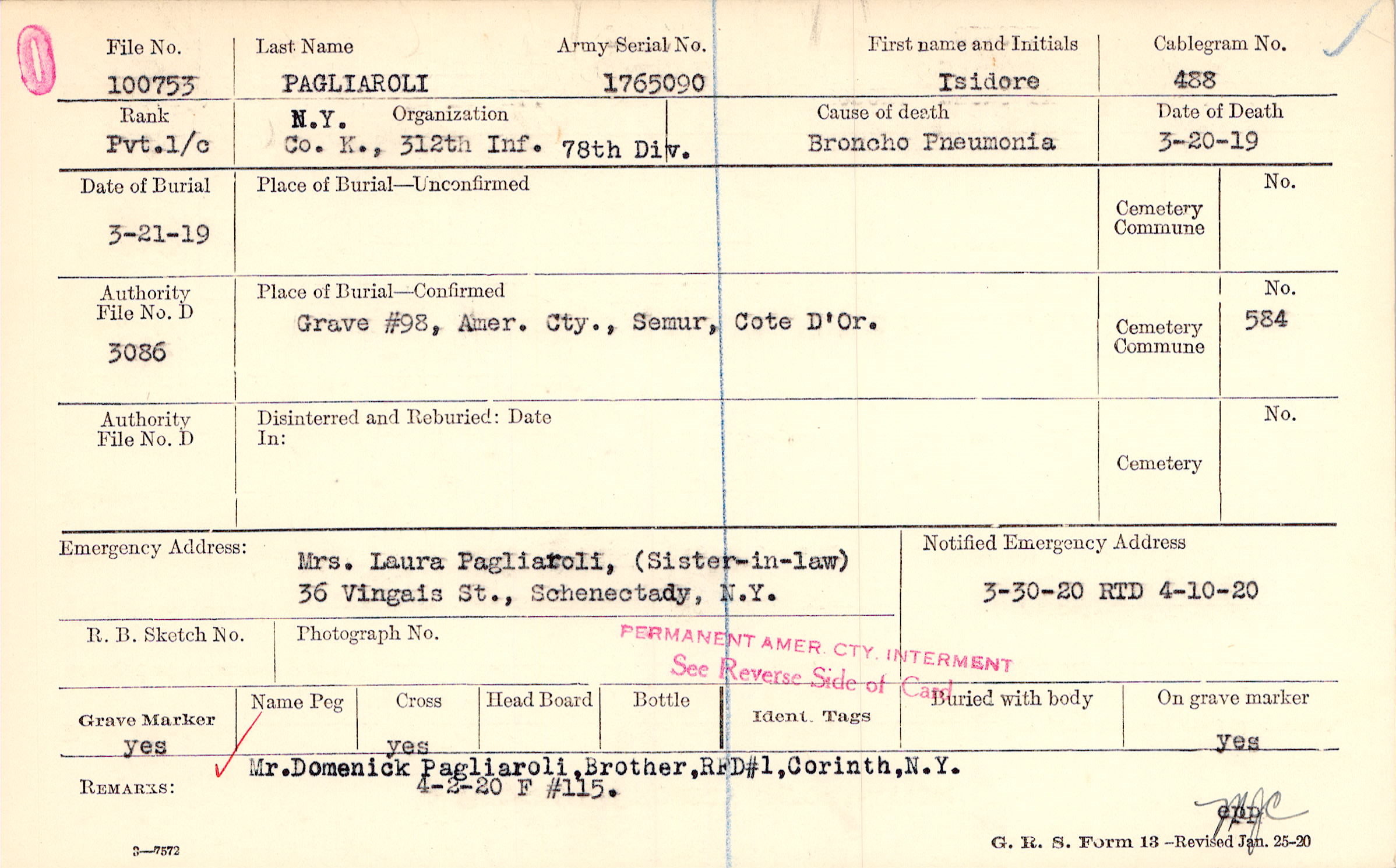 Mr. Domenick Pagliaroli, Brother, RFD #1, Corinth, N.Y., 4-2-20 F #115.
