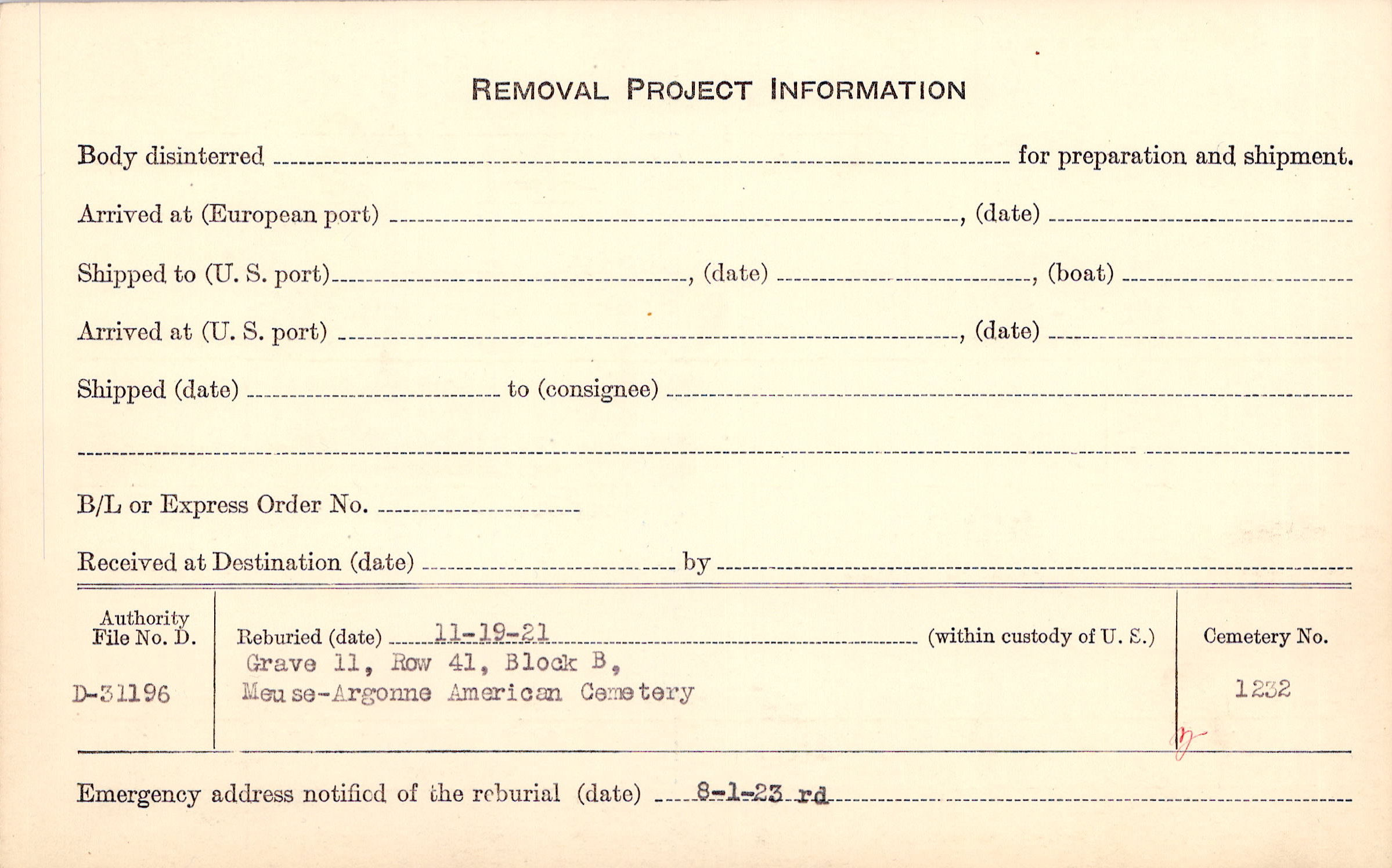 Grave 83, Section 47, Plot 2, Argonne American Cemetery, Romagne-sous-Montfaucon, Meuse