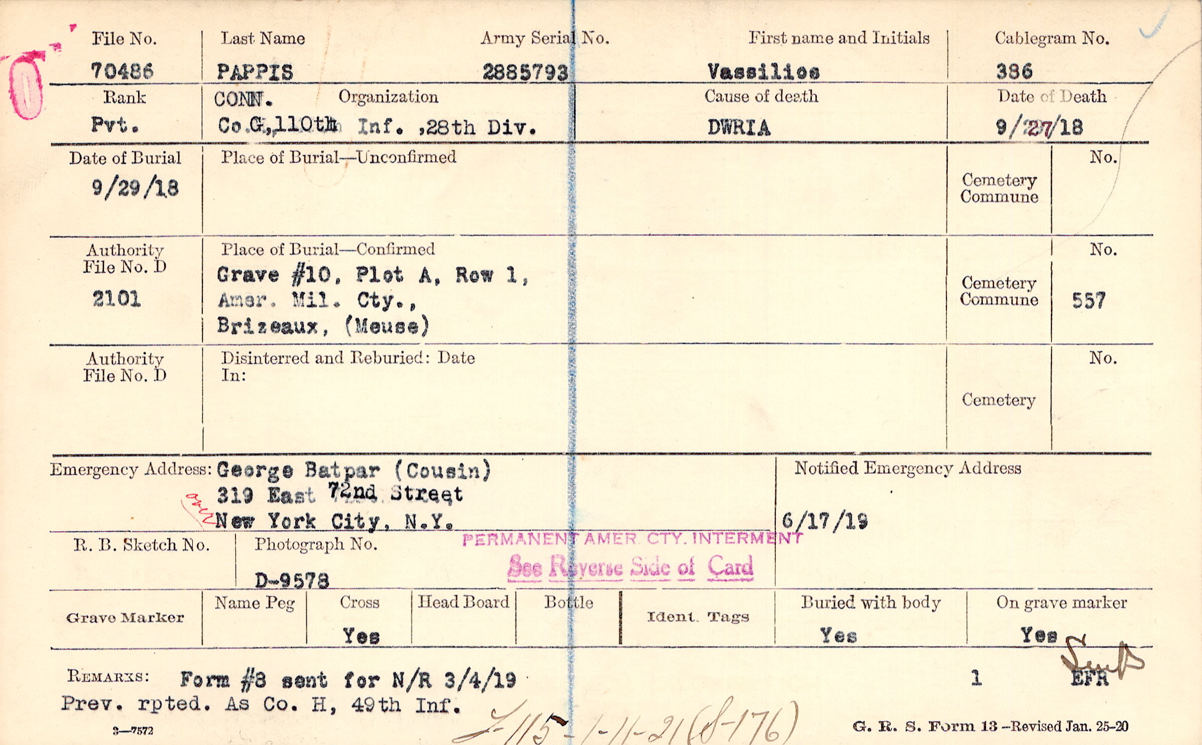 Prev. rptd. As Co. H., 49th Inf., Form #8 sent for N/R 3/4/19, F115 -1-11-21 (S-176)
