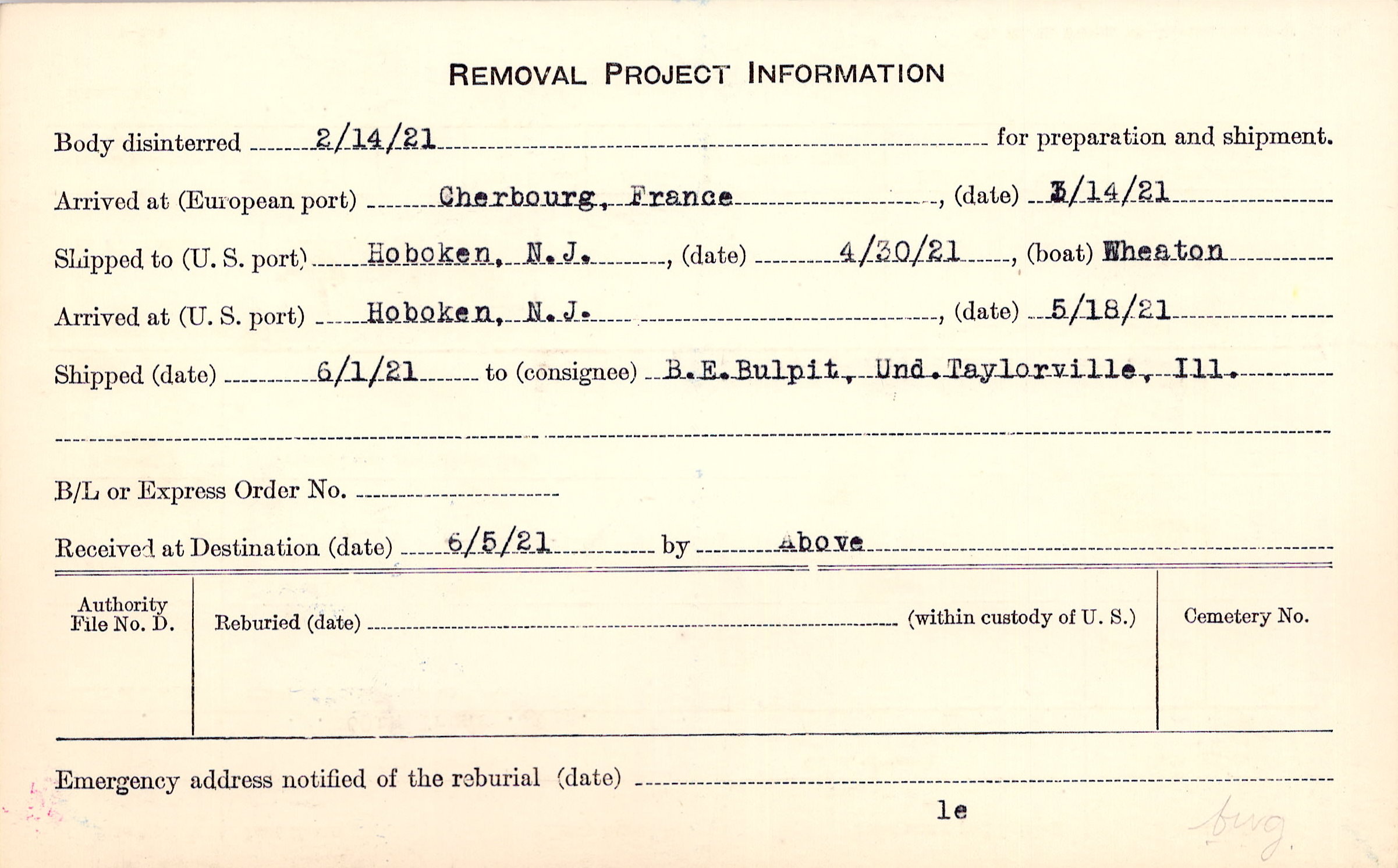 to B. E .Bulpit, Und. Taylorville, Ill.