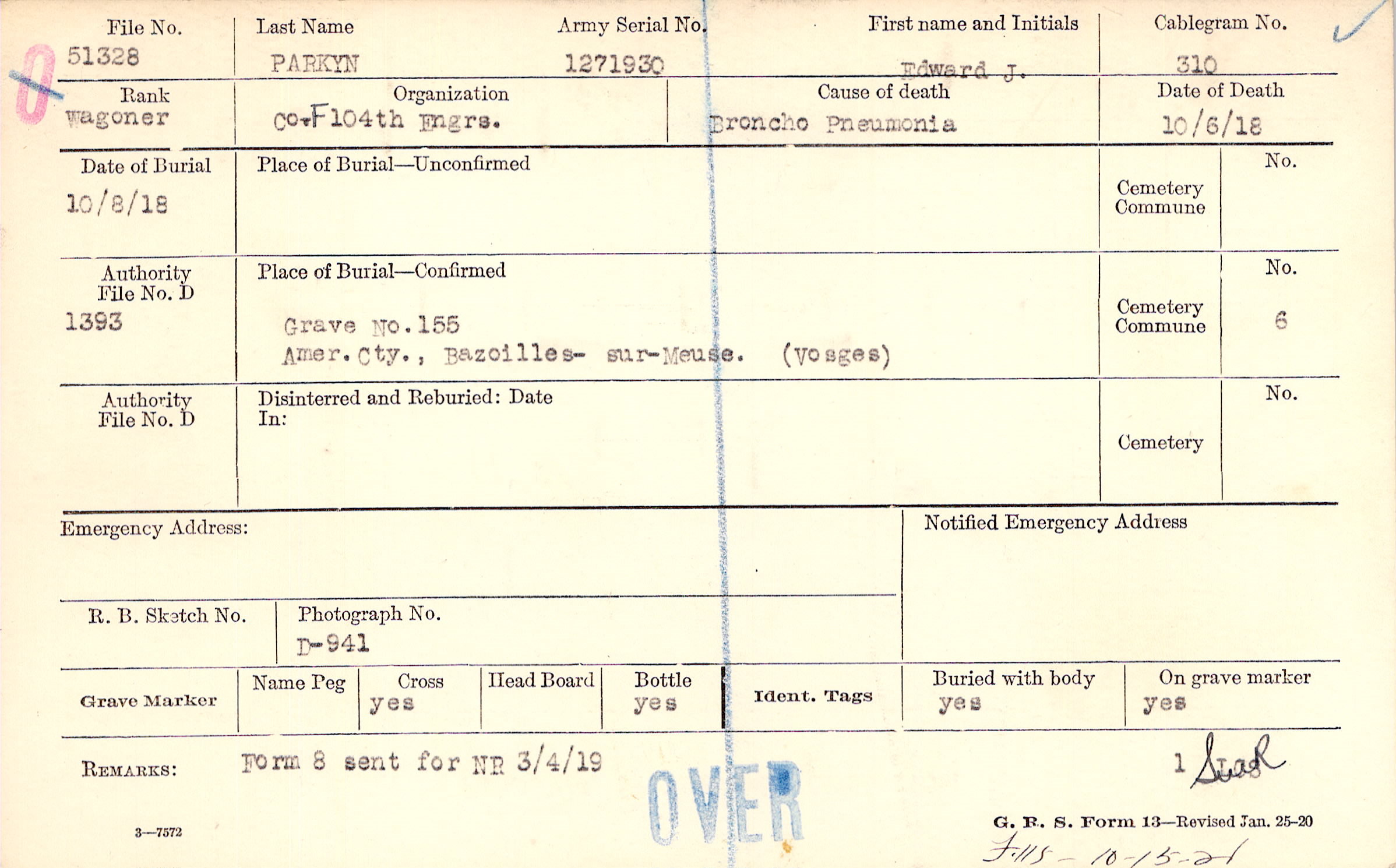 Grave 155, Amer. Cty., Bazoilles-sur-Meuse, Vosges