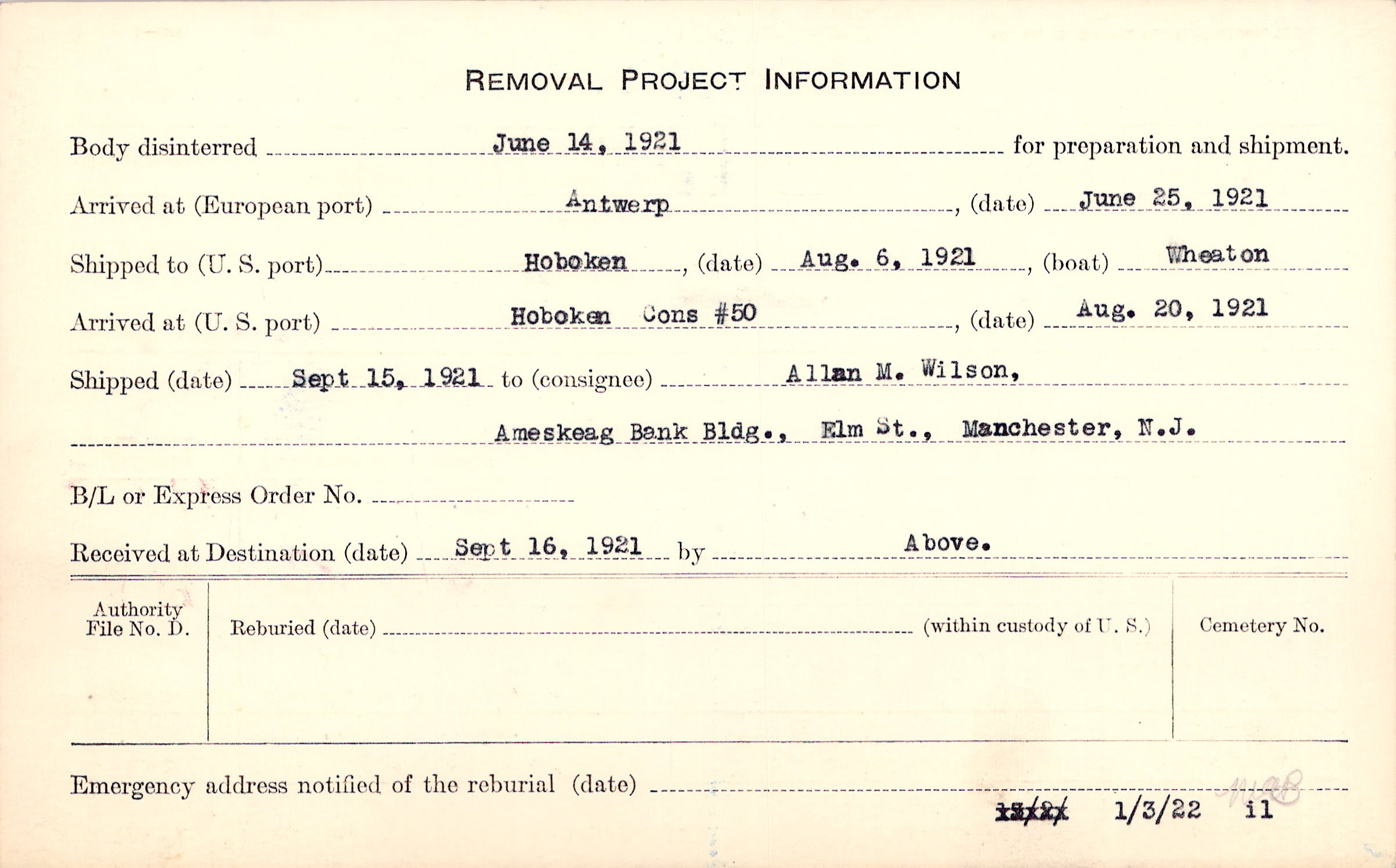 to Allan M. Wilson, Ameskeag Bank Bldg., Elm St., Manchester, N.J.
