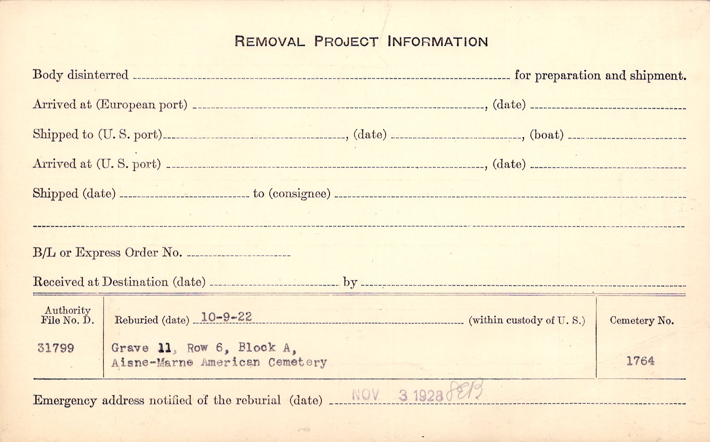 | Reburied (date): |