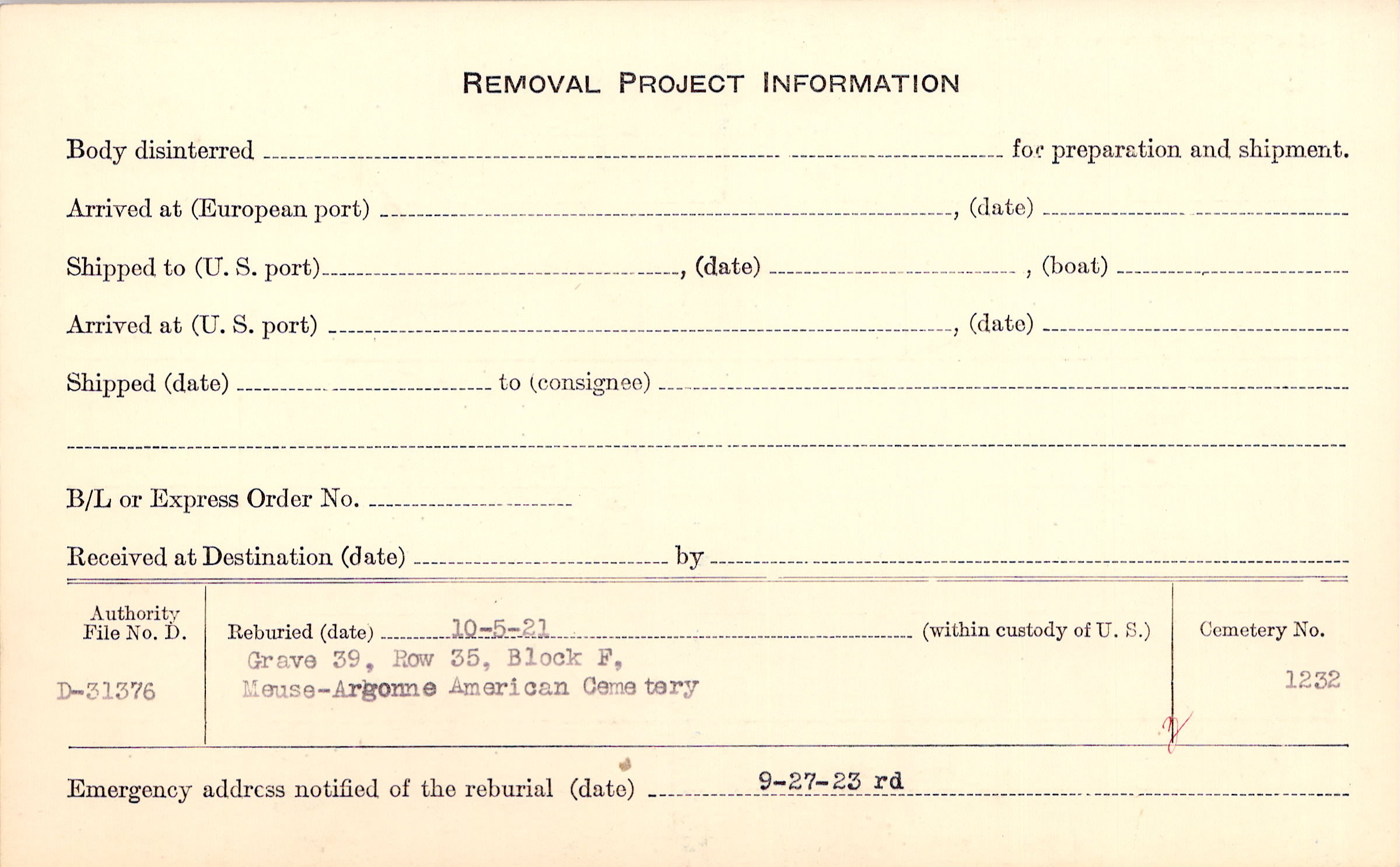 Grave 10, Amer. B/A Cty., Romagne-sous-Montfaucon, Meuse