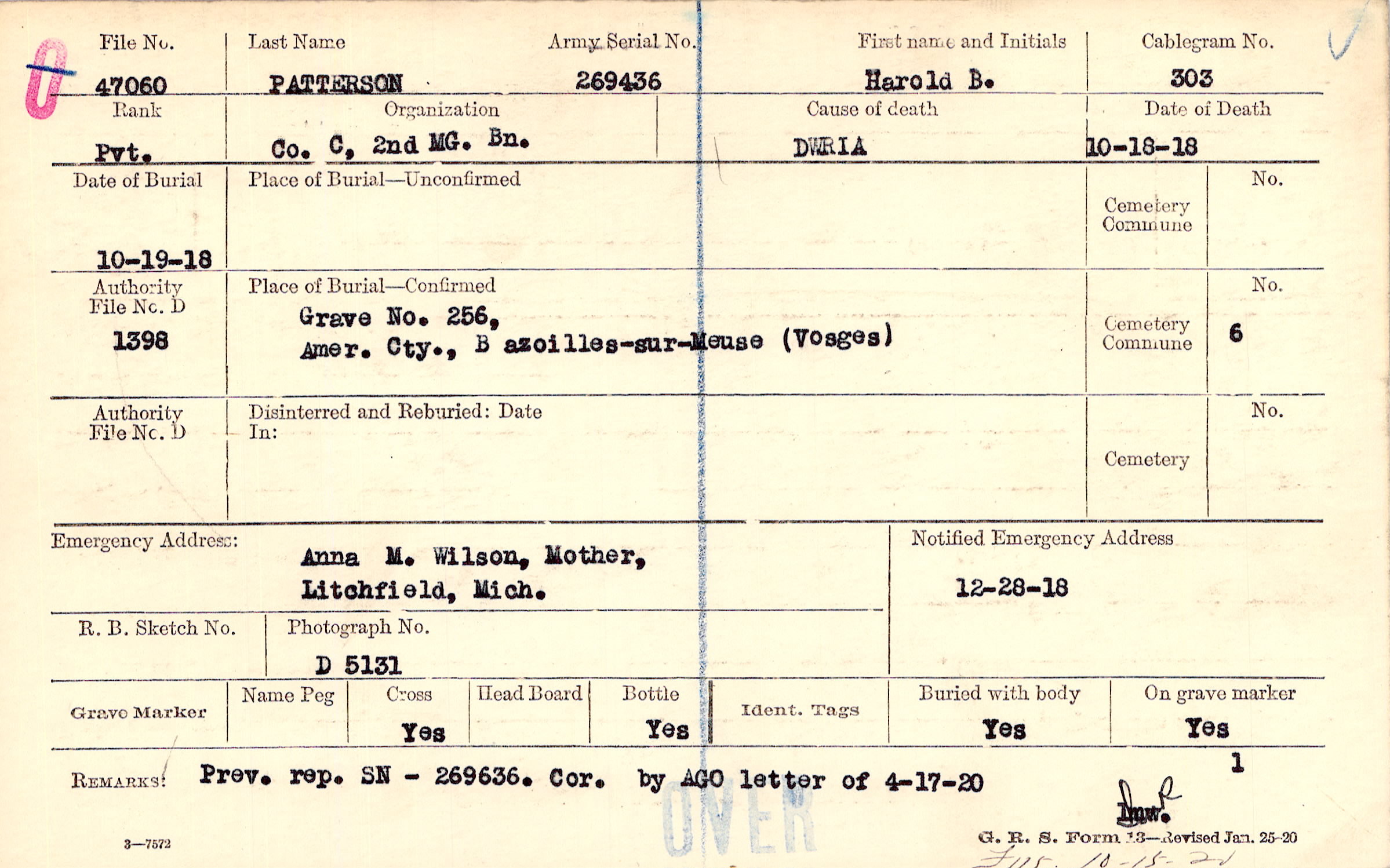 Grave 256, Amer. Cty., B azoilles-sur-Meuse, Vosges