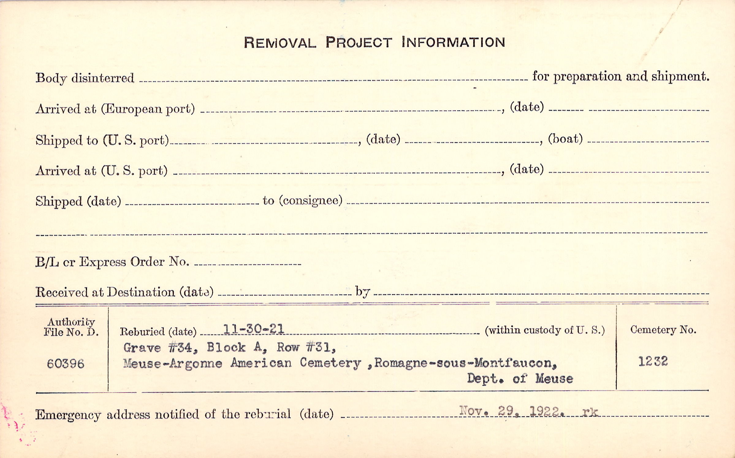 | Permanent Burial in Foreign Cemetery |