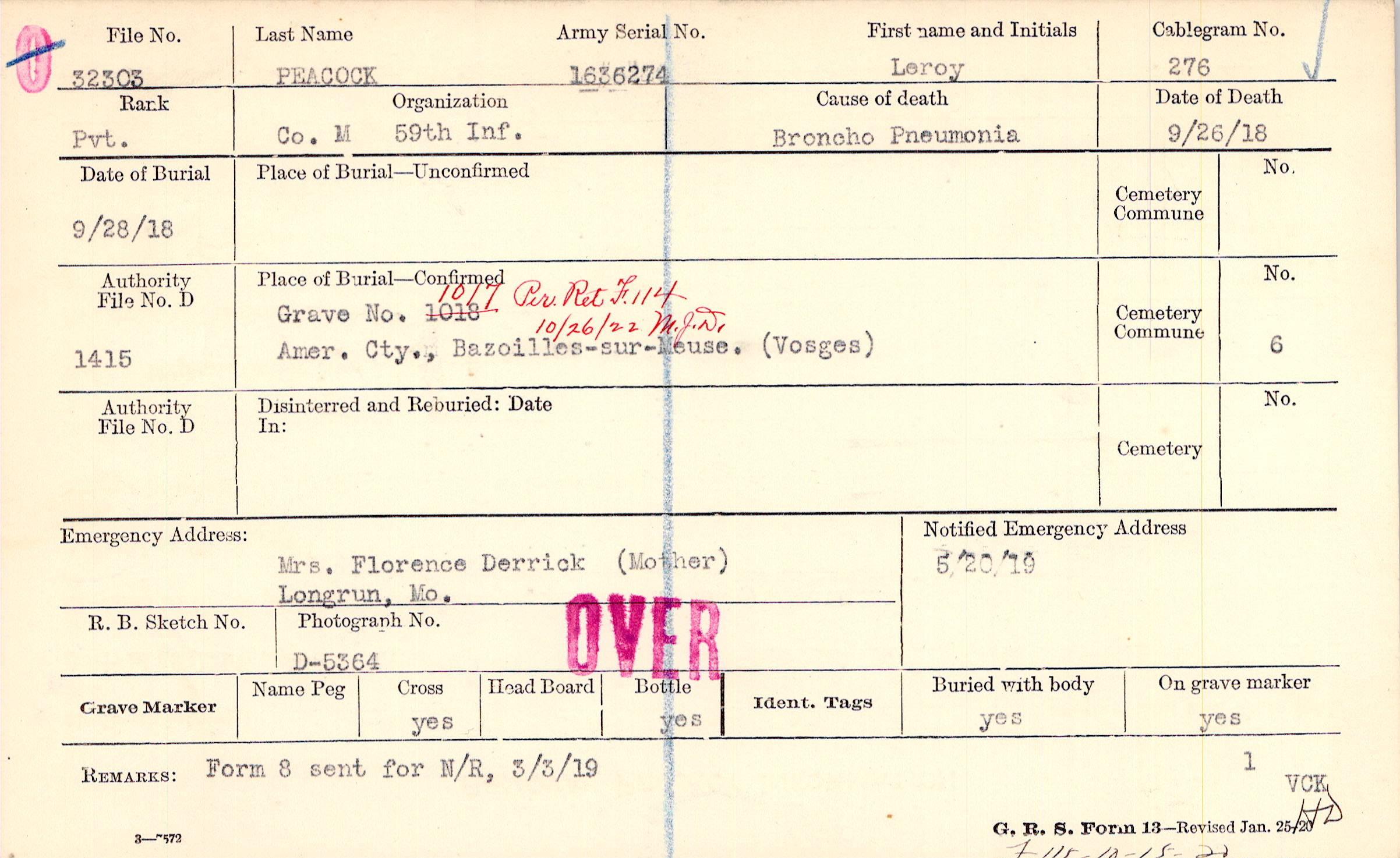 Grave 1017, Amer. Cty., Bazoilles-sur-Meuse, Vosges