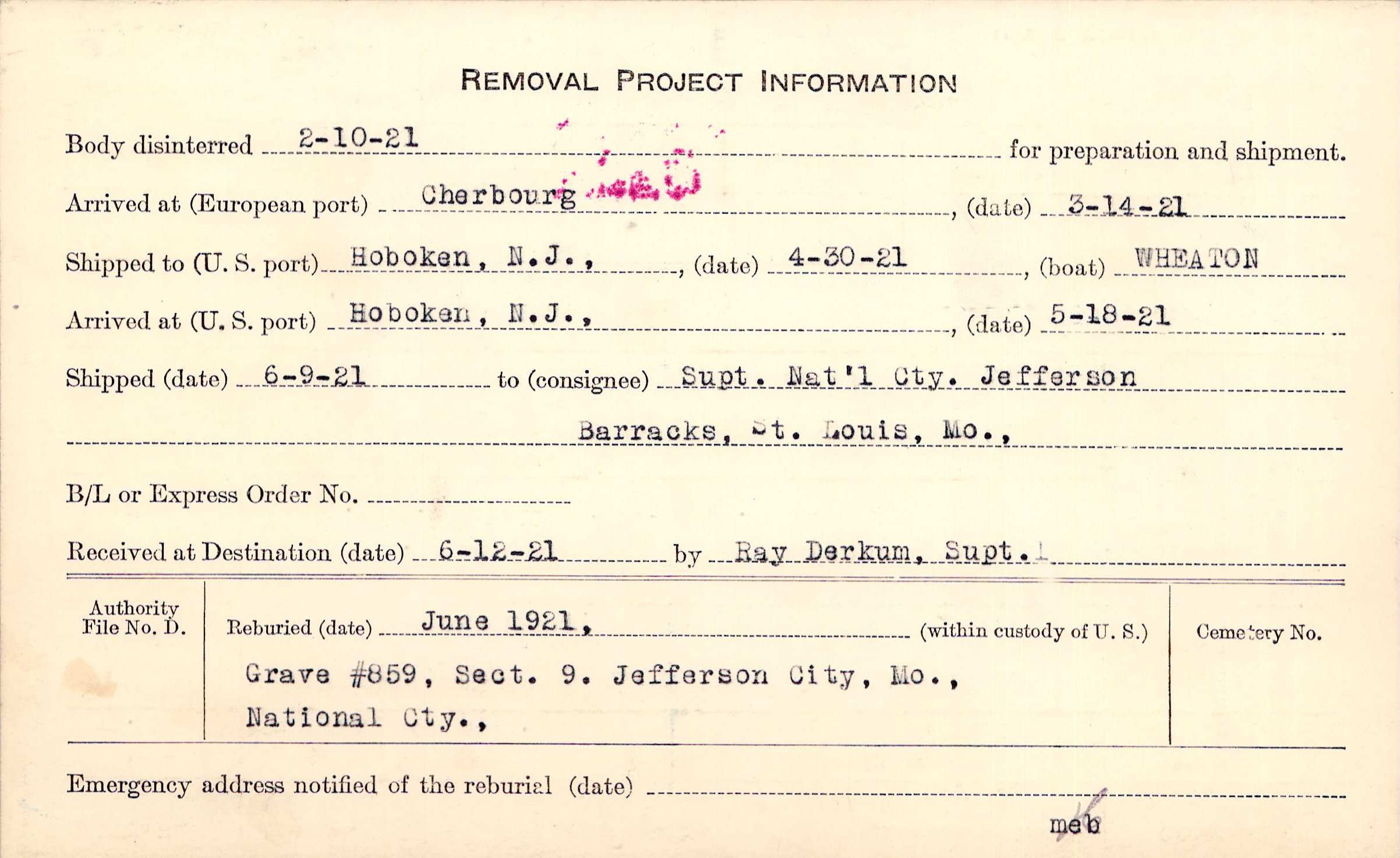 to Supt. Nat'l Ct.y, Jefferson Barracks, St. Louis, Mo.