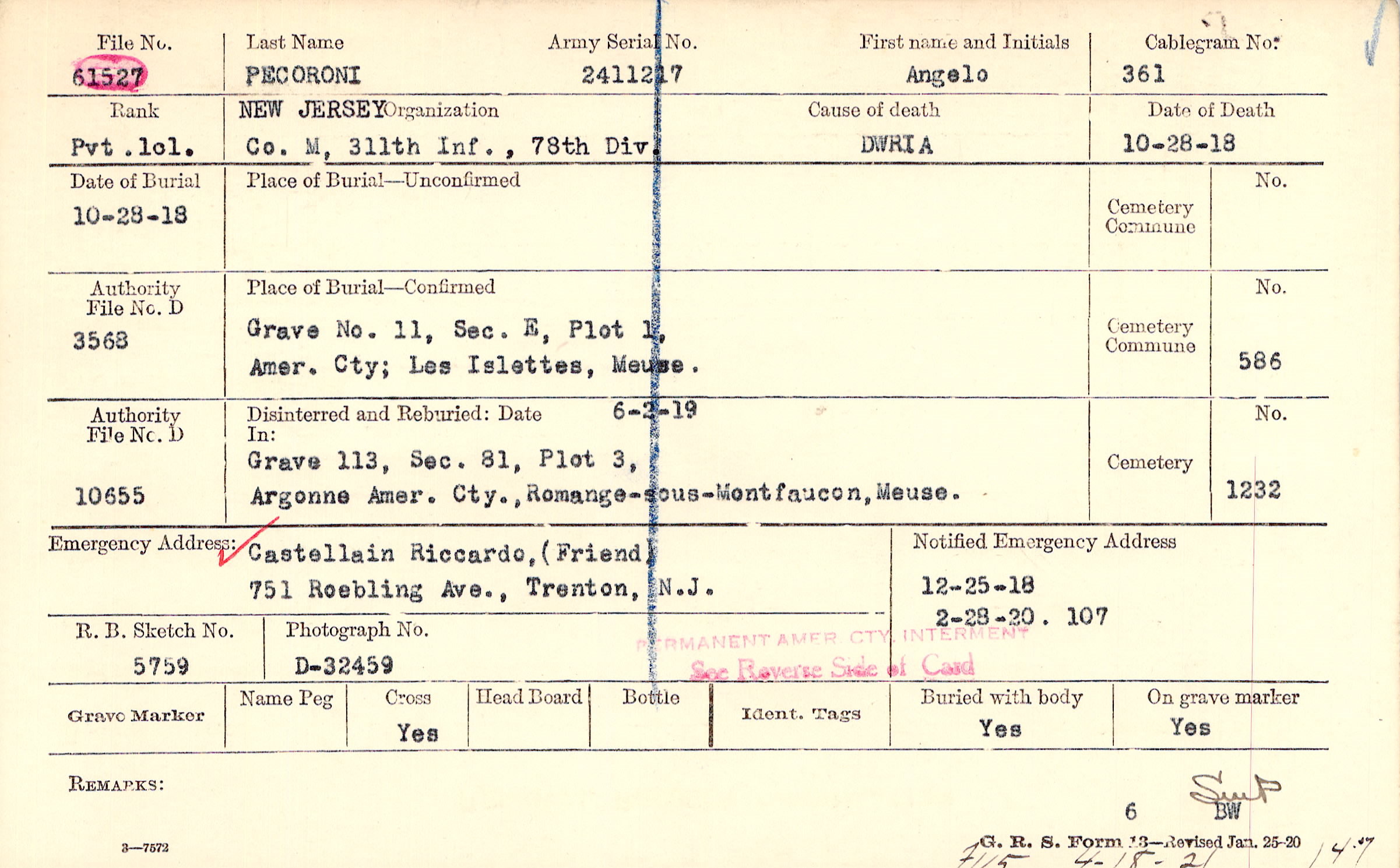 Castellain Riccardo, (Friend), 751 Roebling Ave., Trenton, N. J.