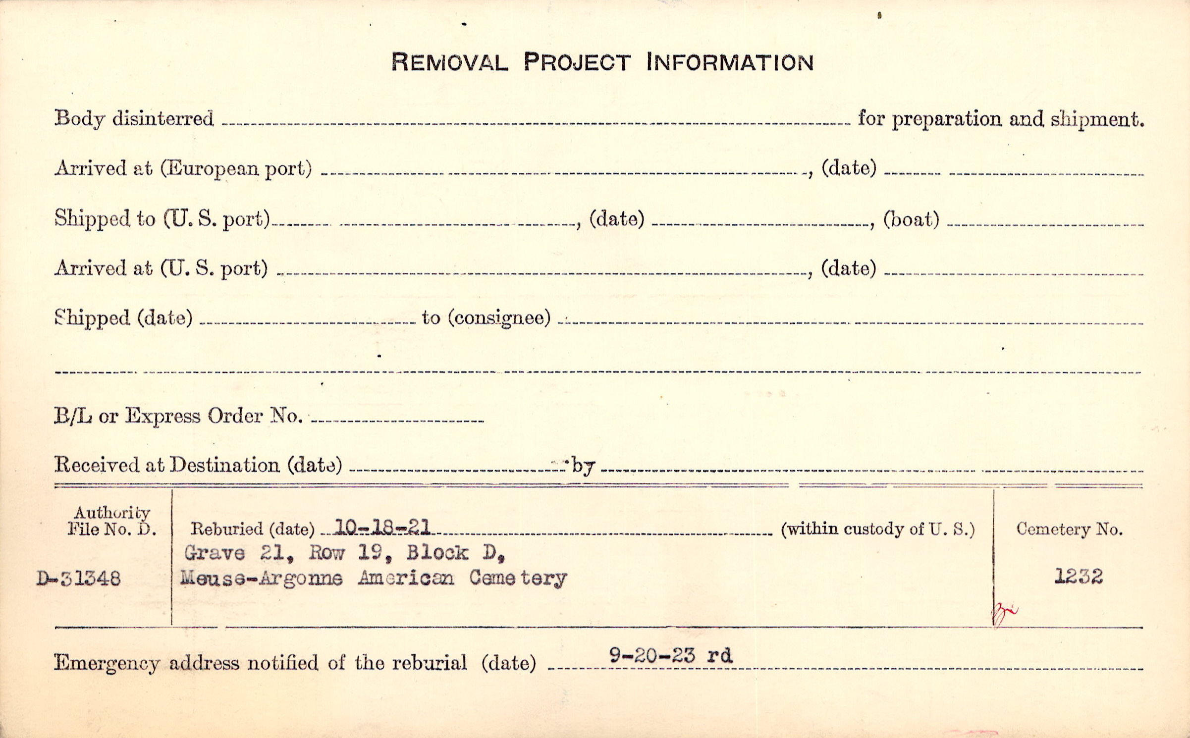 | Permanent Burial in Foreign Cemetery |
