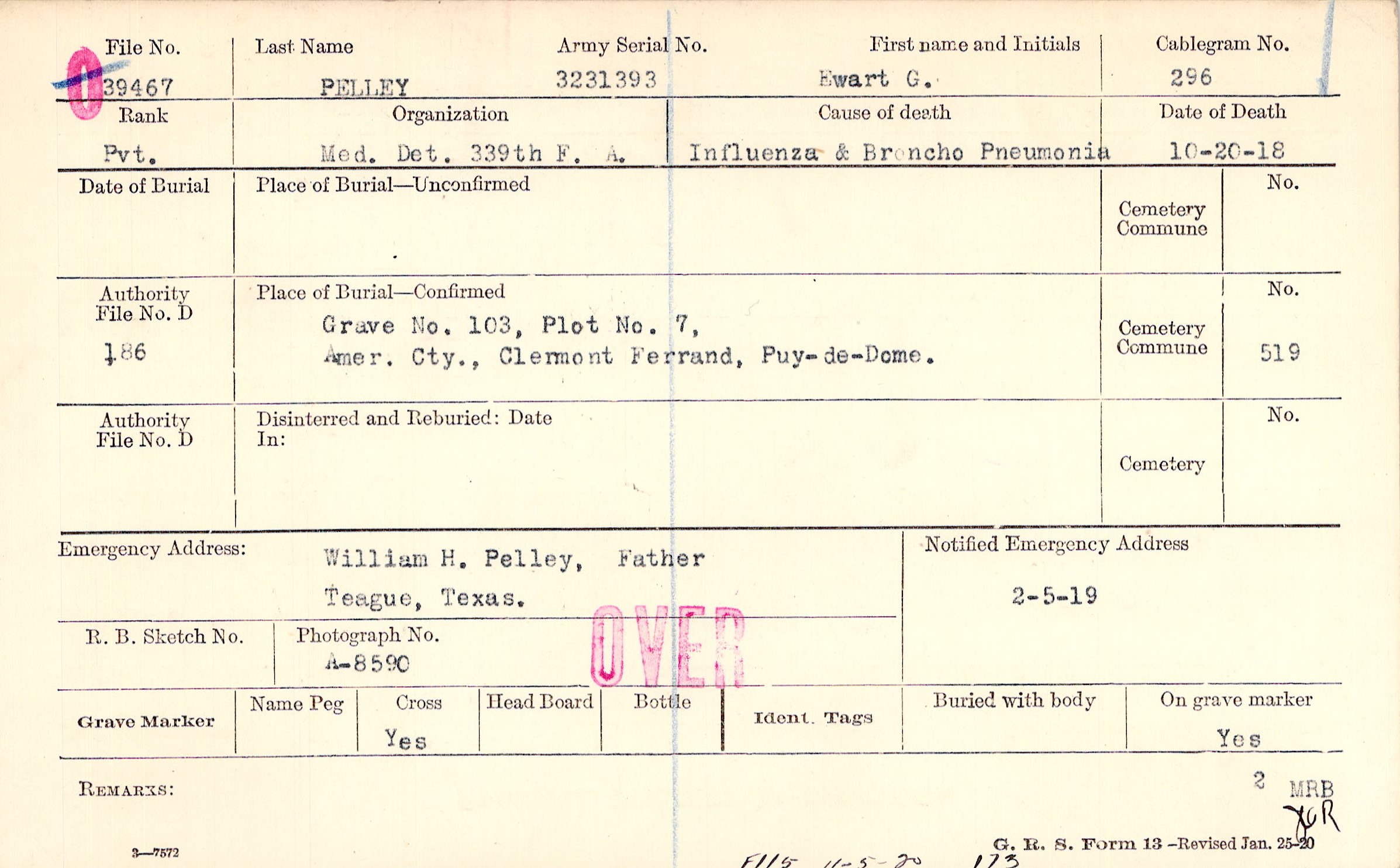 Grave 103, Plot 7, Amer. Cty., Clermont Ferrand, Puy-de-Dome