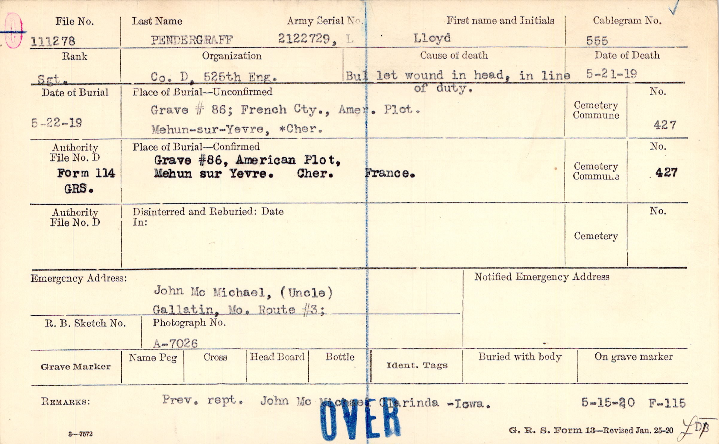Grave #86, American Plot, Mehun sur Yevre., Cher., France.