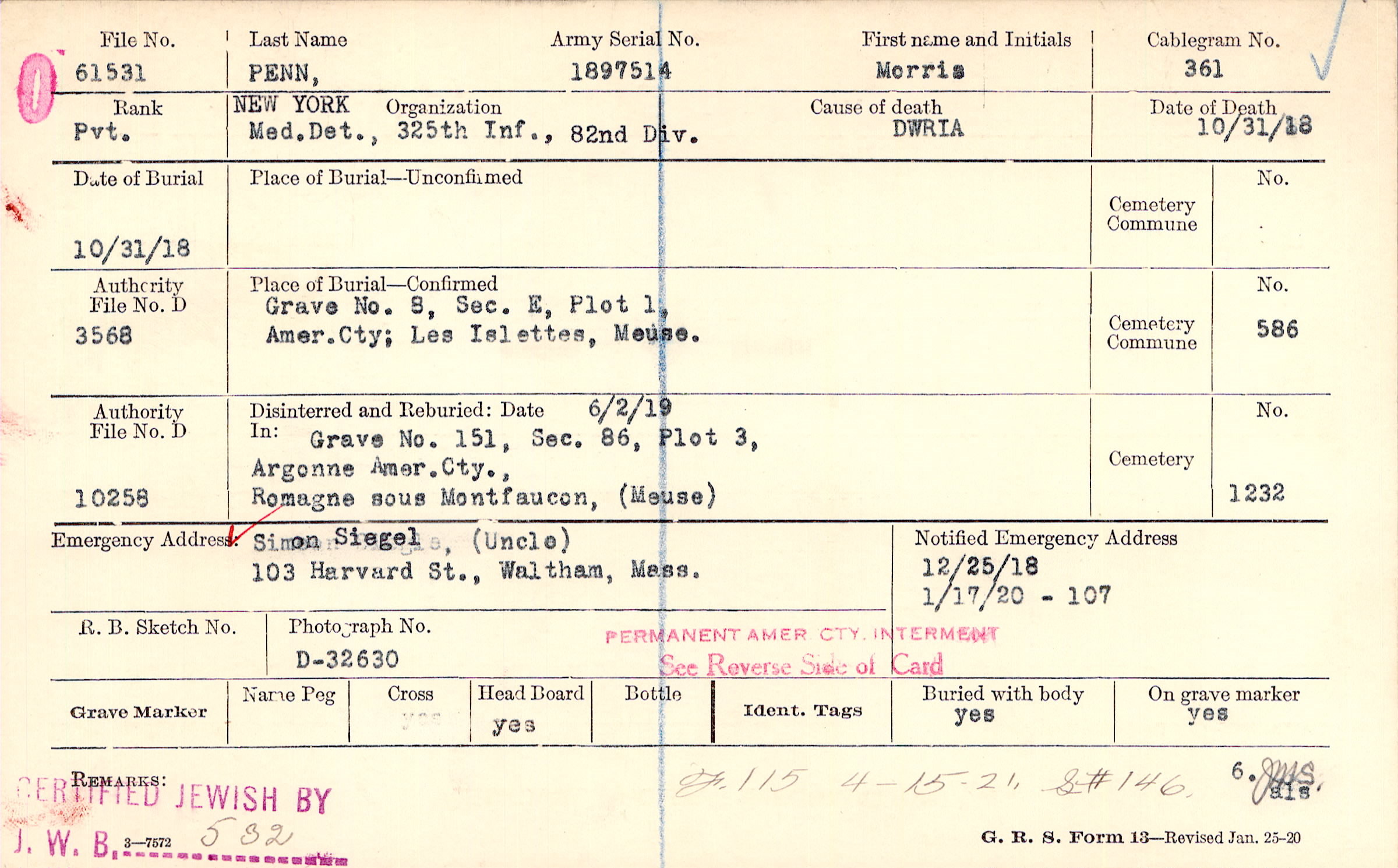 12/25/1918, Form 107: 1/17/1920