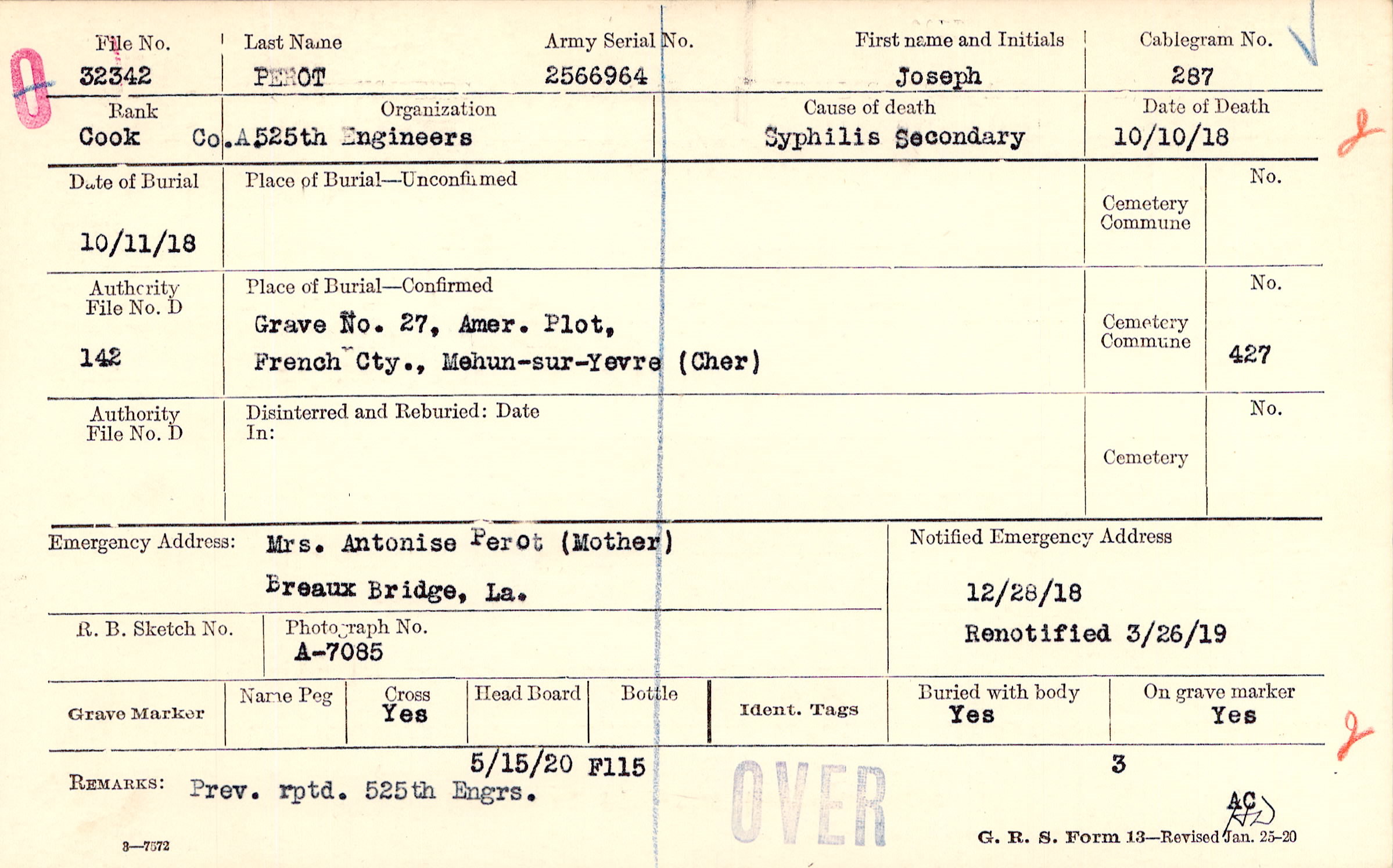 Grave 27, Amer. Plot, French Cty., Mehun-sur-Yevre (Cher)