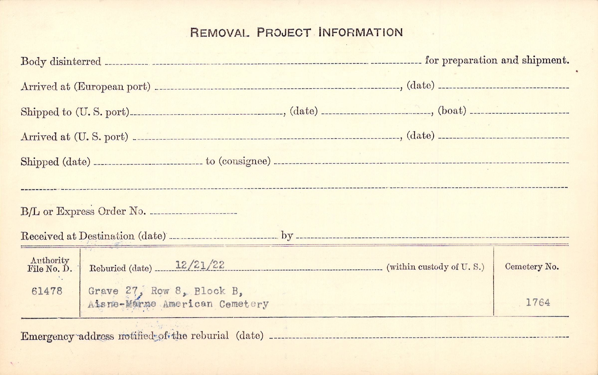 | Permanent Burial in Foreign Cemetery |