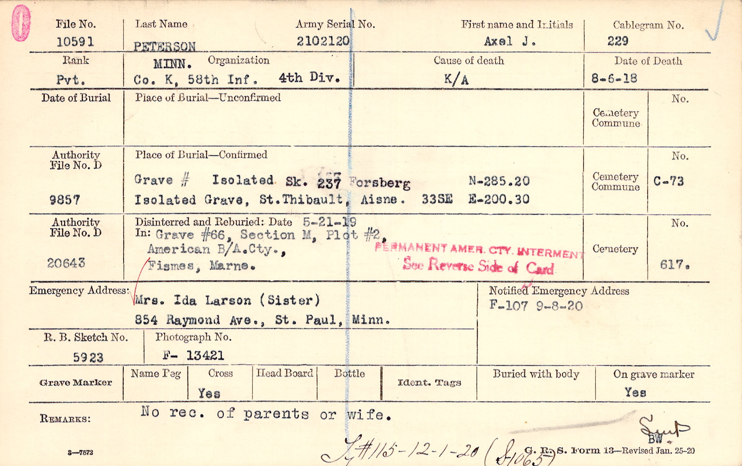 Grave #, Isolated, Sk. 237 Forsberg, Isolated Grave, St. Thibault, Aisne., 33SE