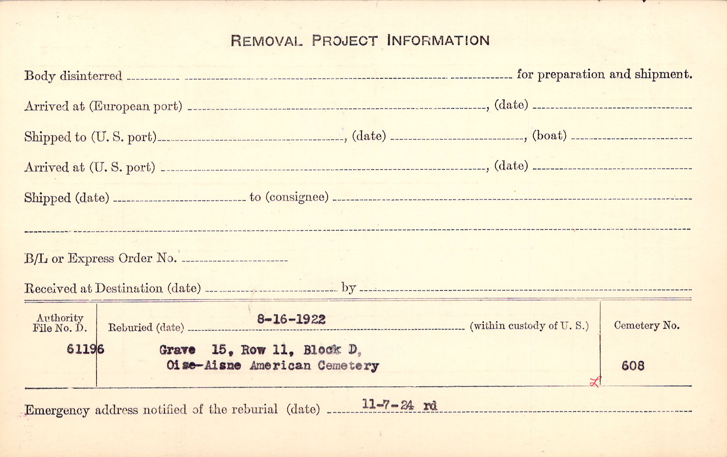 | Reburied (date): |