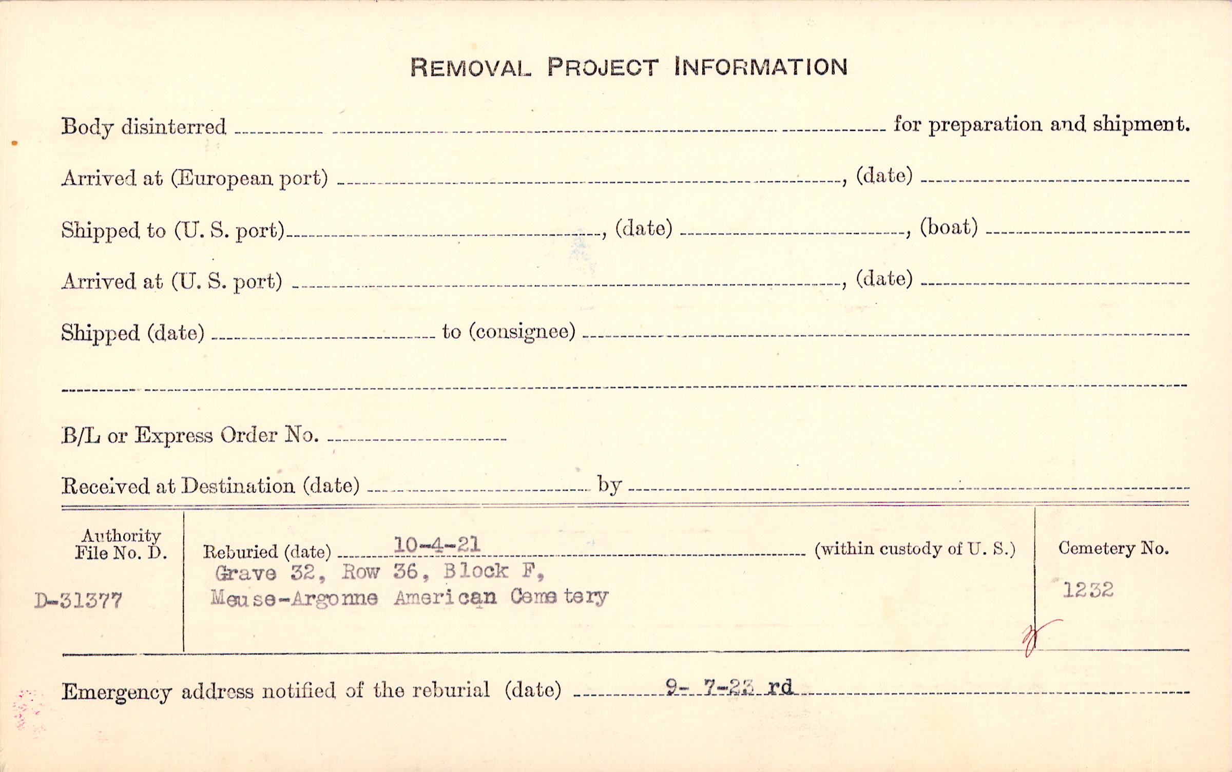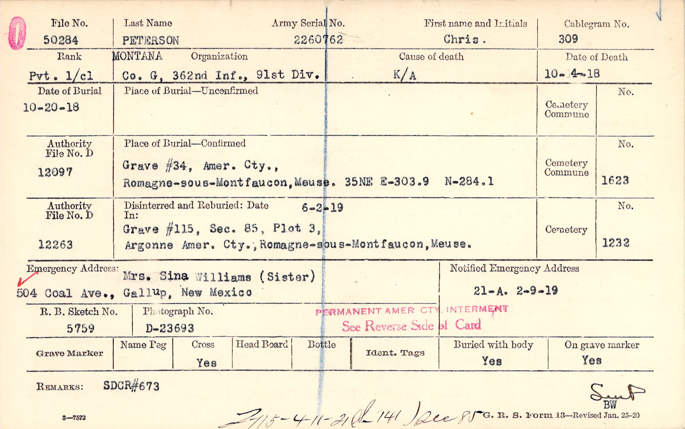 Grave #34, Amer. Cty., Romagne-sous-Montfaucon, Meuse., 35NE