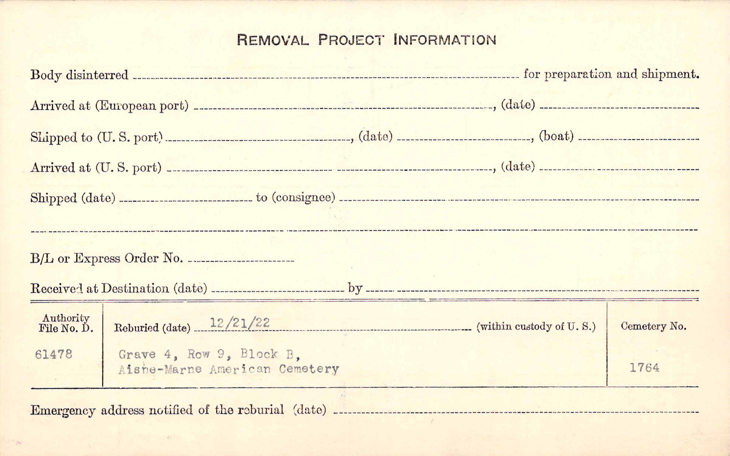 Grave 158, Plot 10, Amer. Cty., Clermont Ferrand, Puy-de-Dome