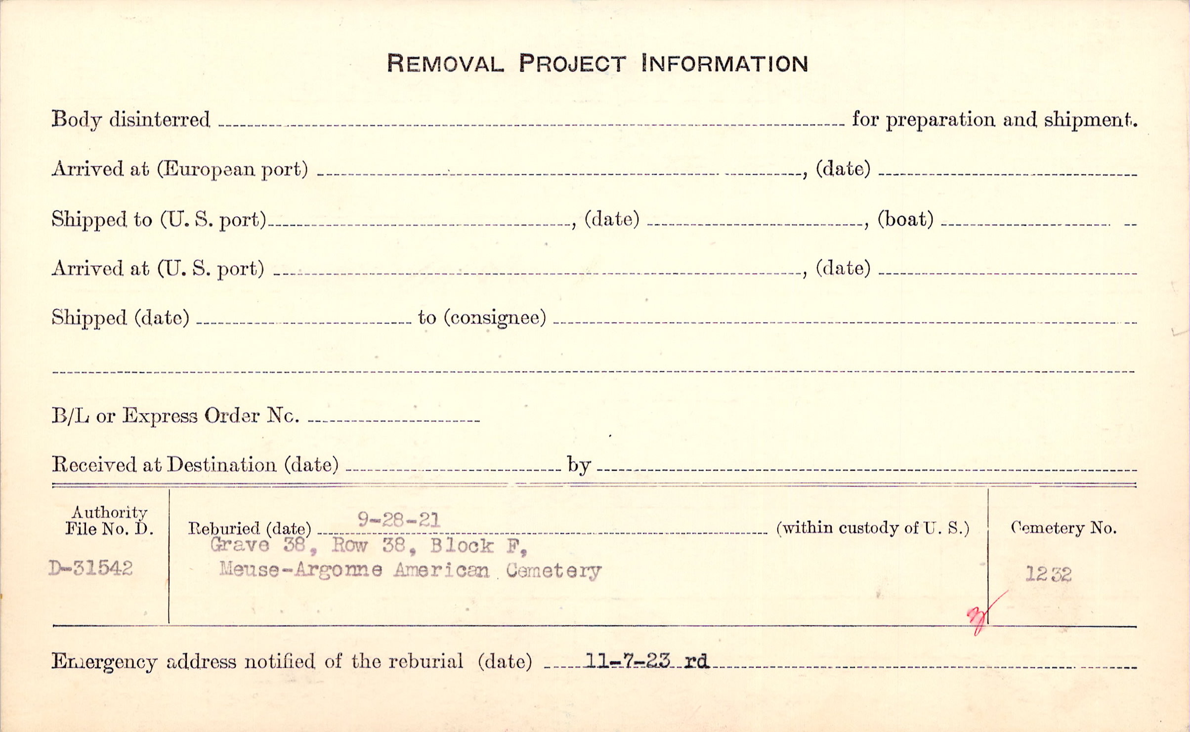 | Reburied (date): |