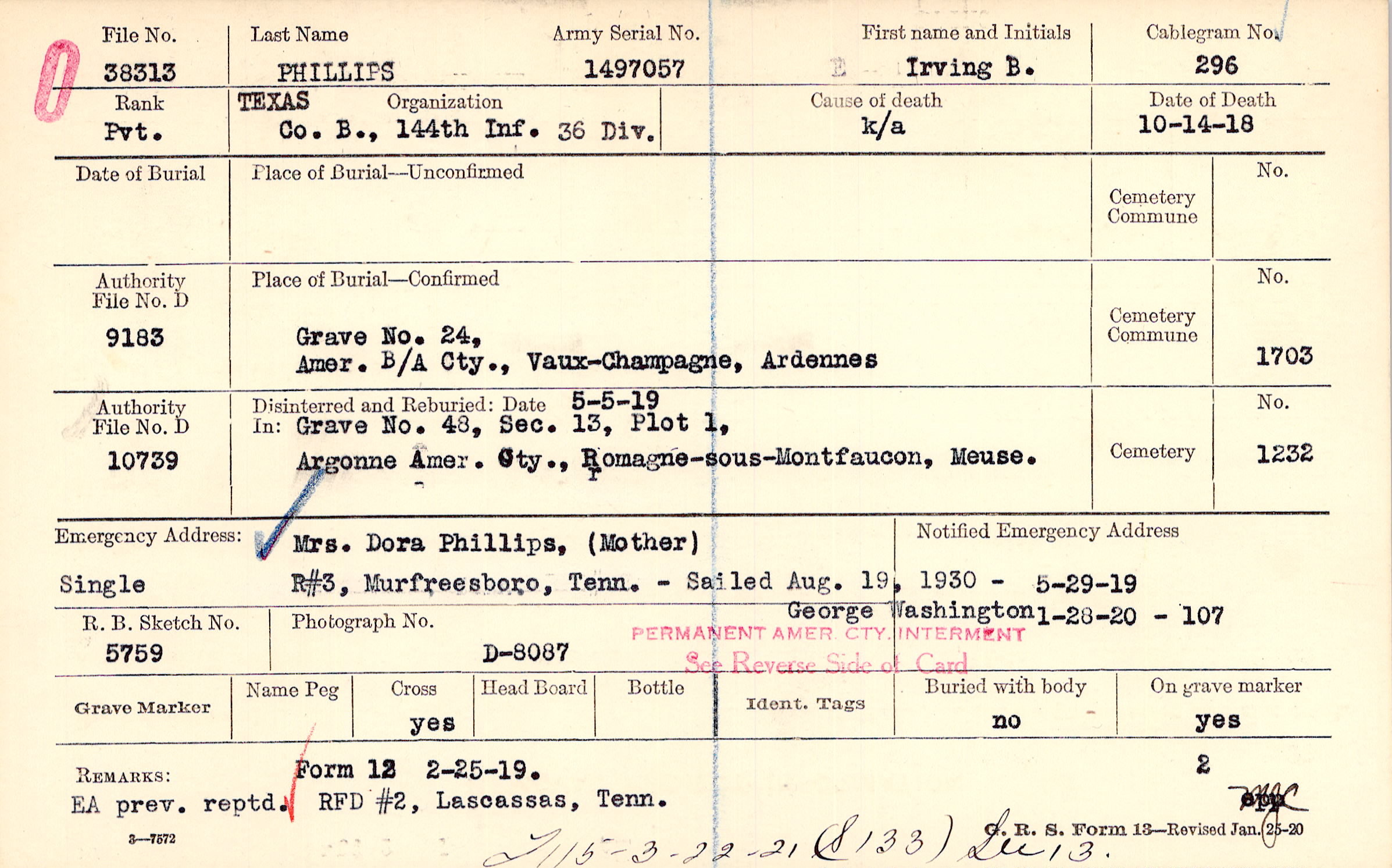 Grave 24, Amer. B/A Cty., Vaux-Champagne, Ardennes