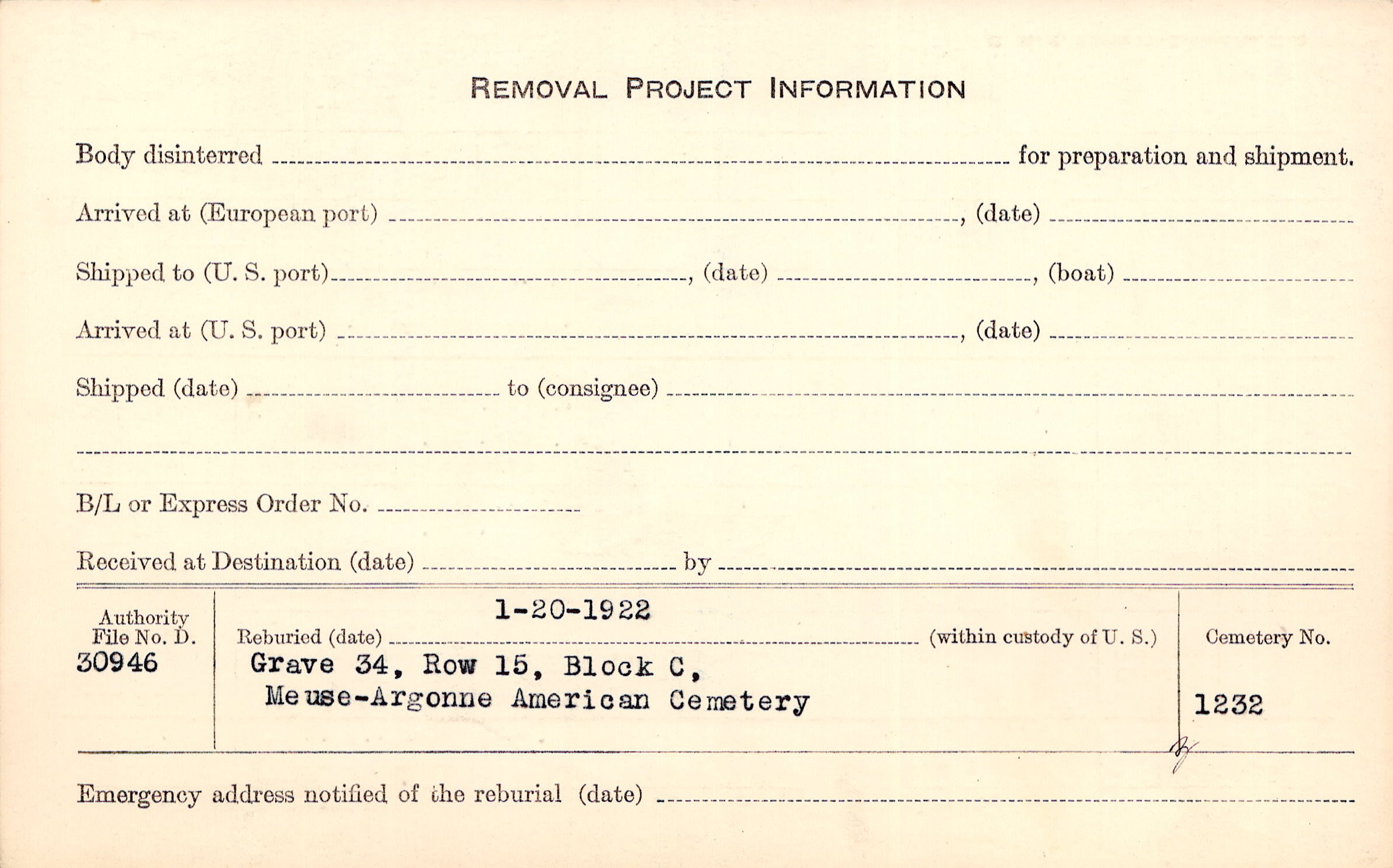 | Permanent Burial in Foreign Cemetery |