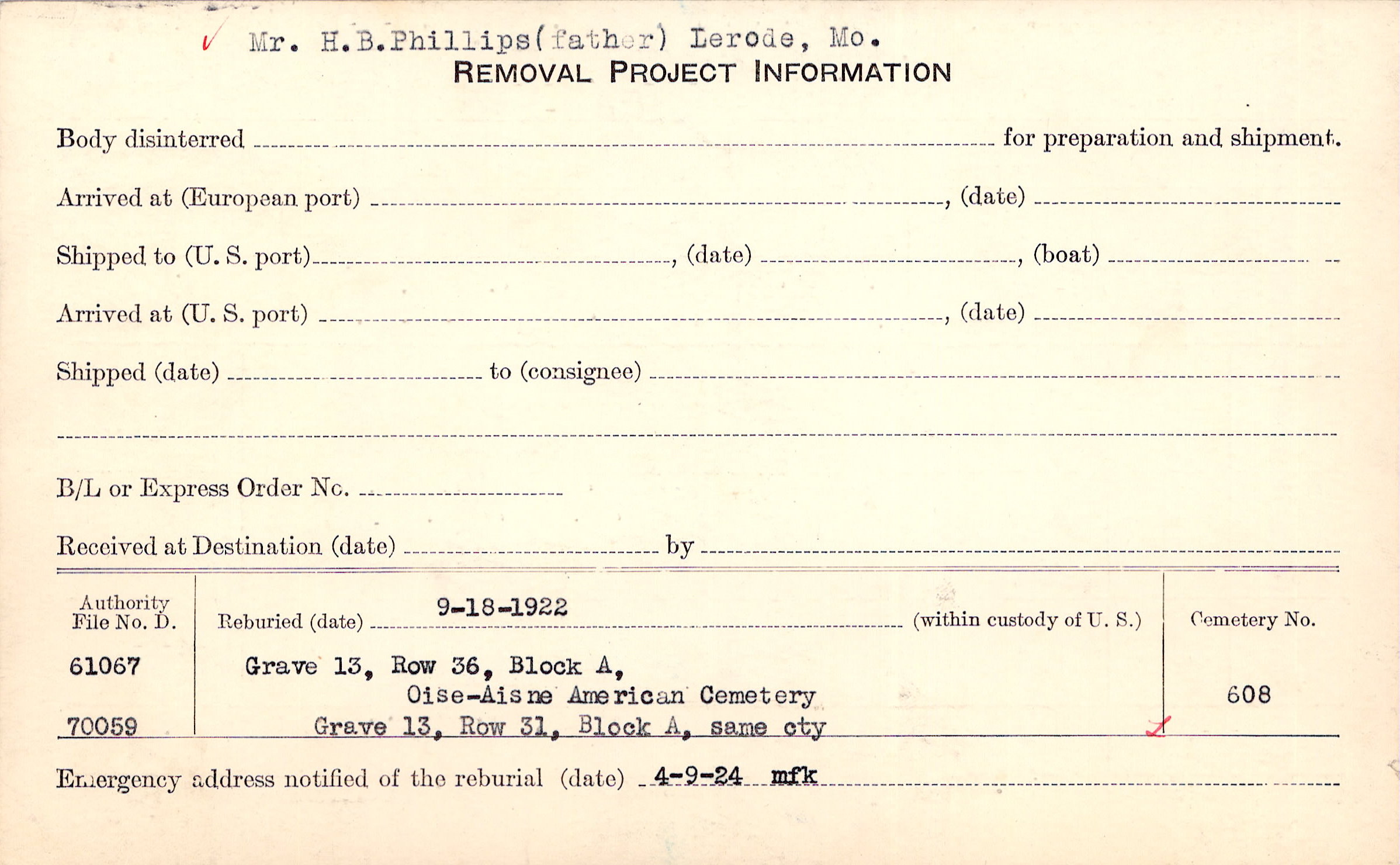 Mr. H.B. Phillips (father) Lerode, Mo. |