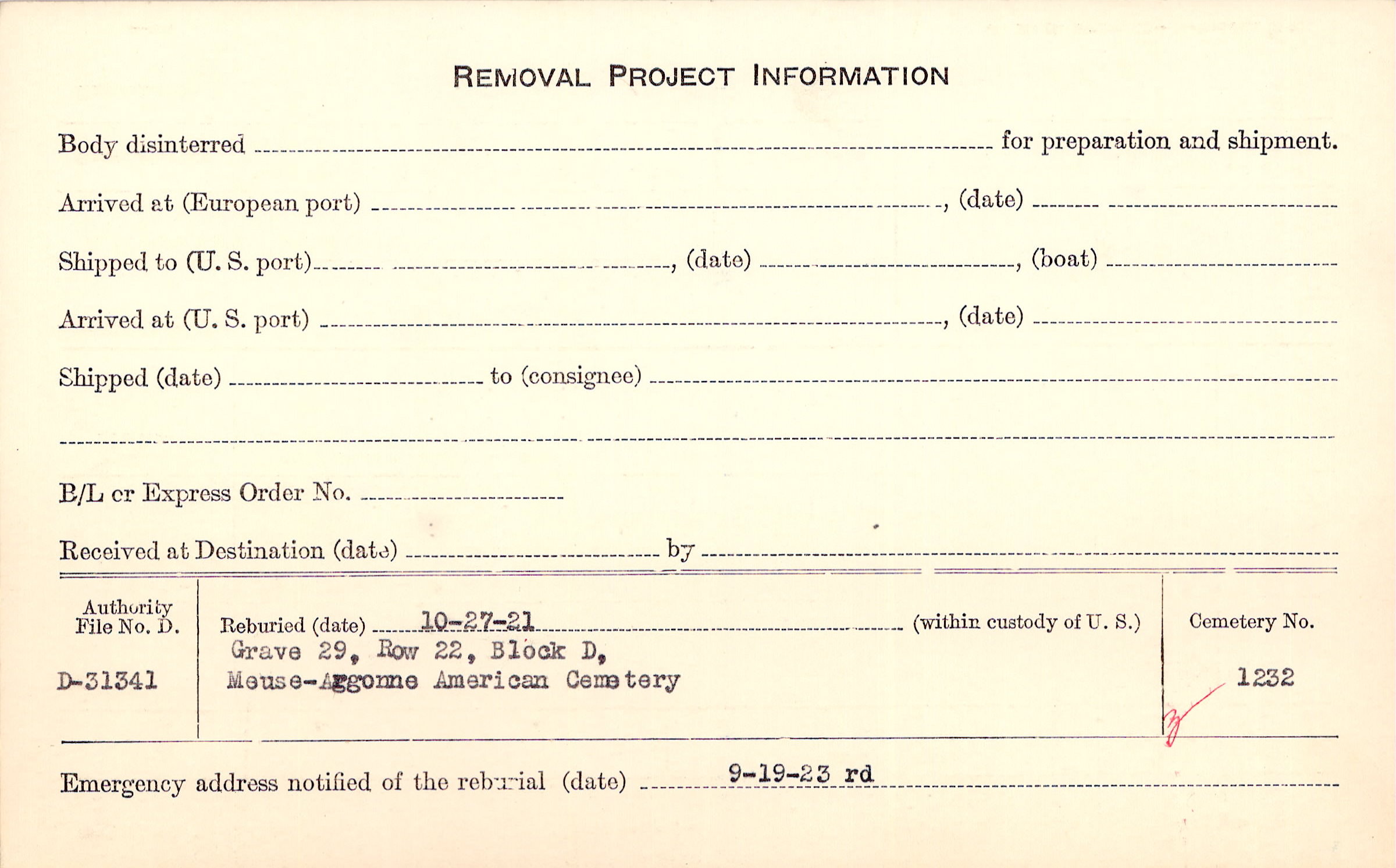 | Permanent Burial in Foreign Cemetery |