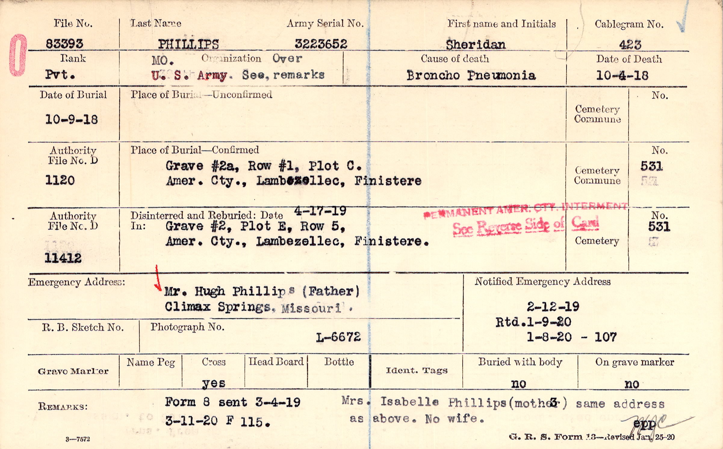 Grave #2a, Row #1, Plot C, Amer. Cty., Lambezellec, Finistere