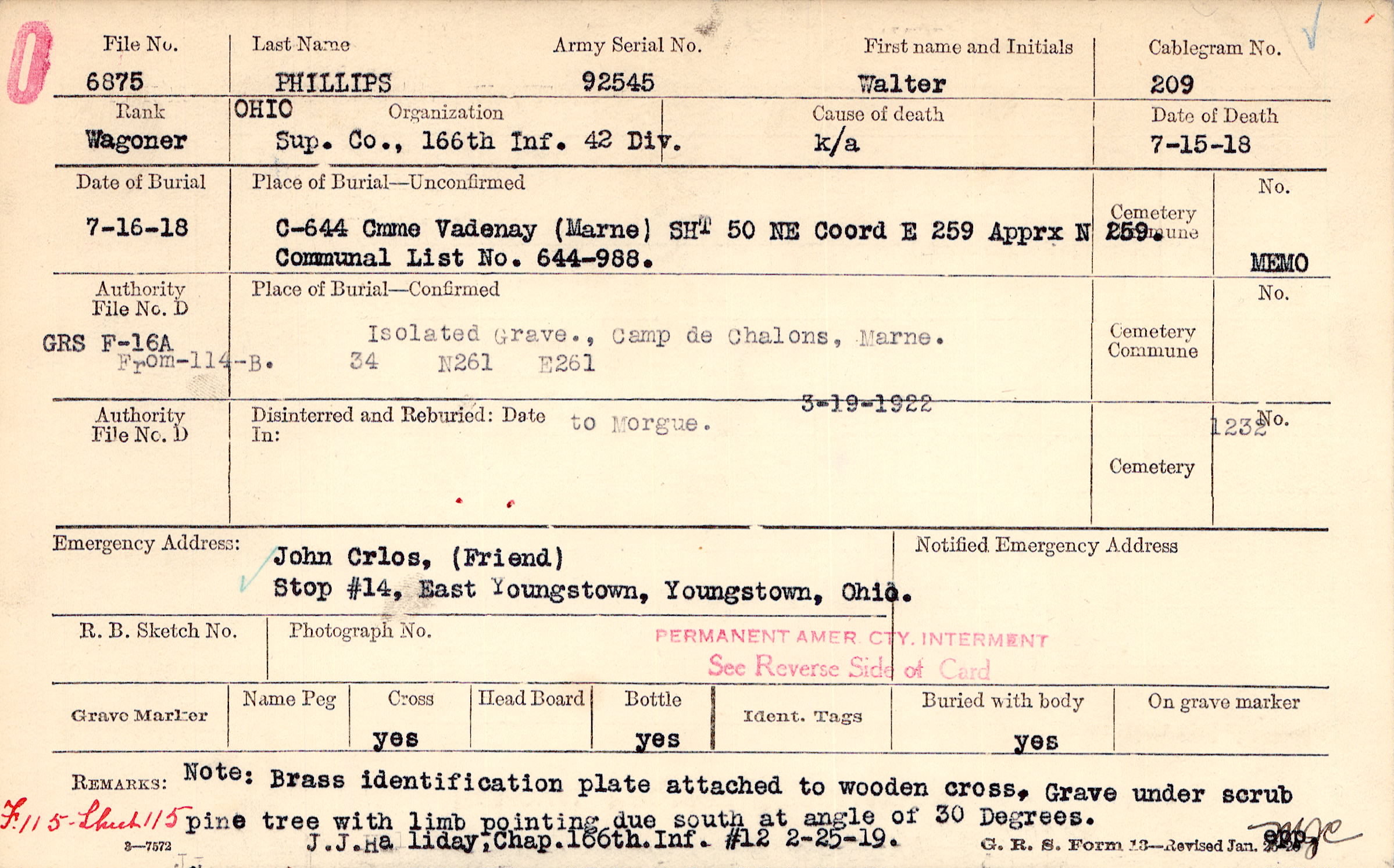 Isolated Grave, Camp de Chalons, Marne, 34