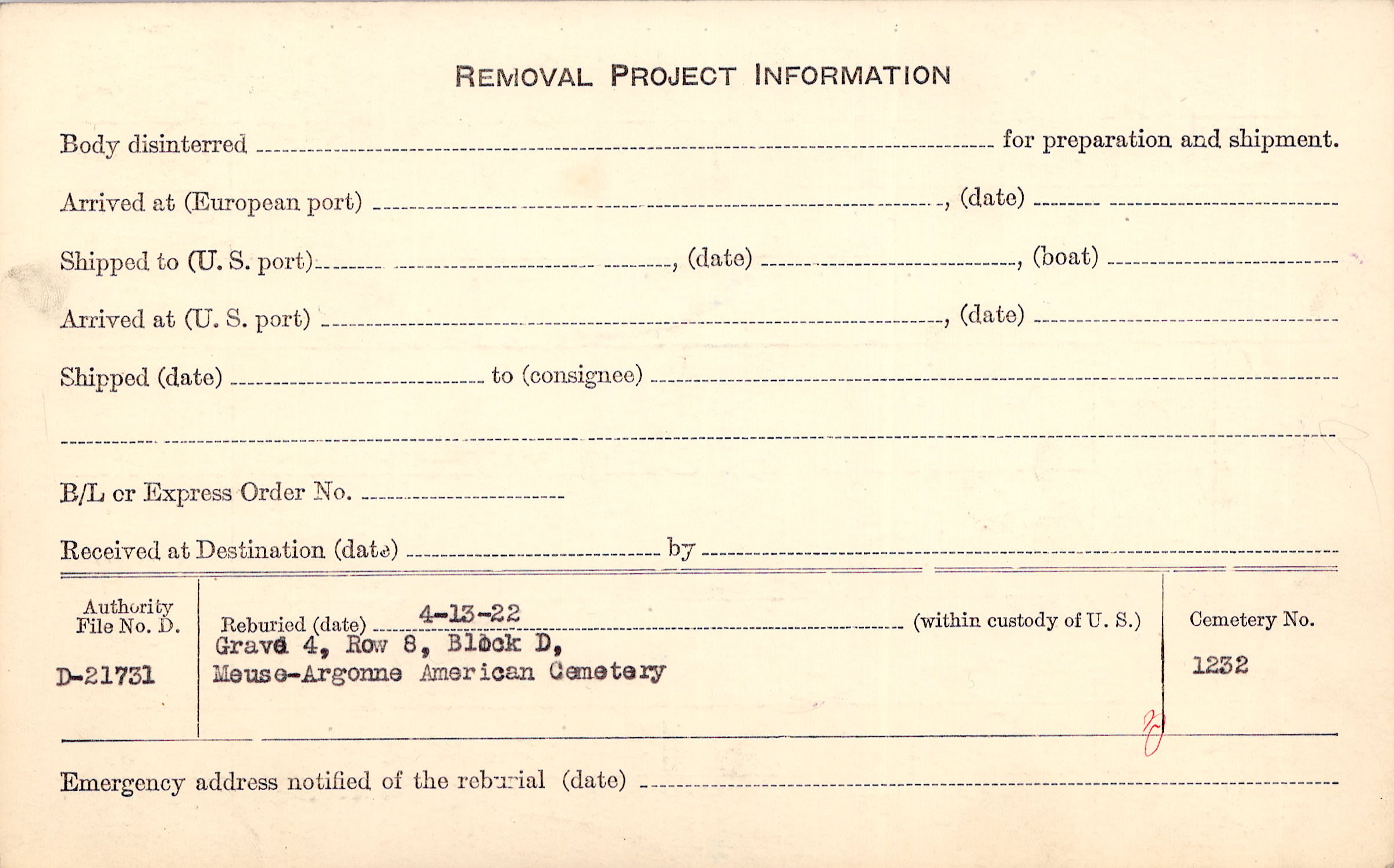 | Permanent Burial in Foreign Cemetery |