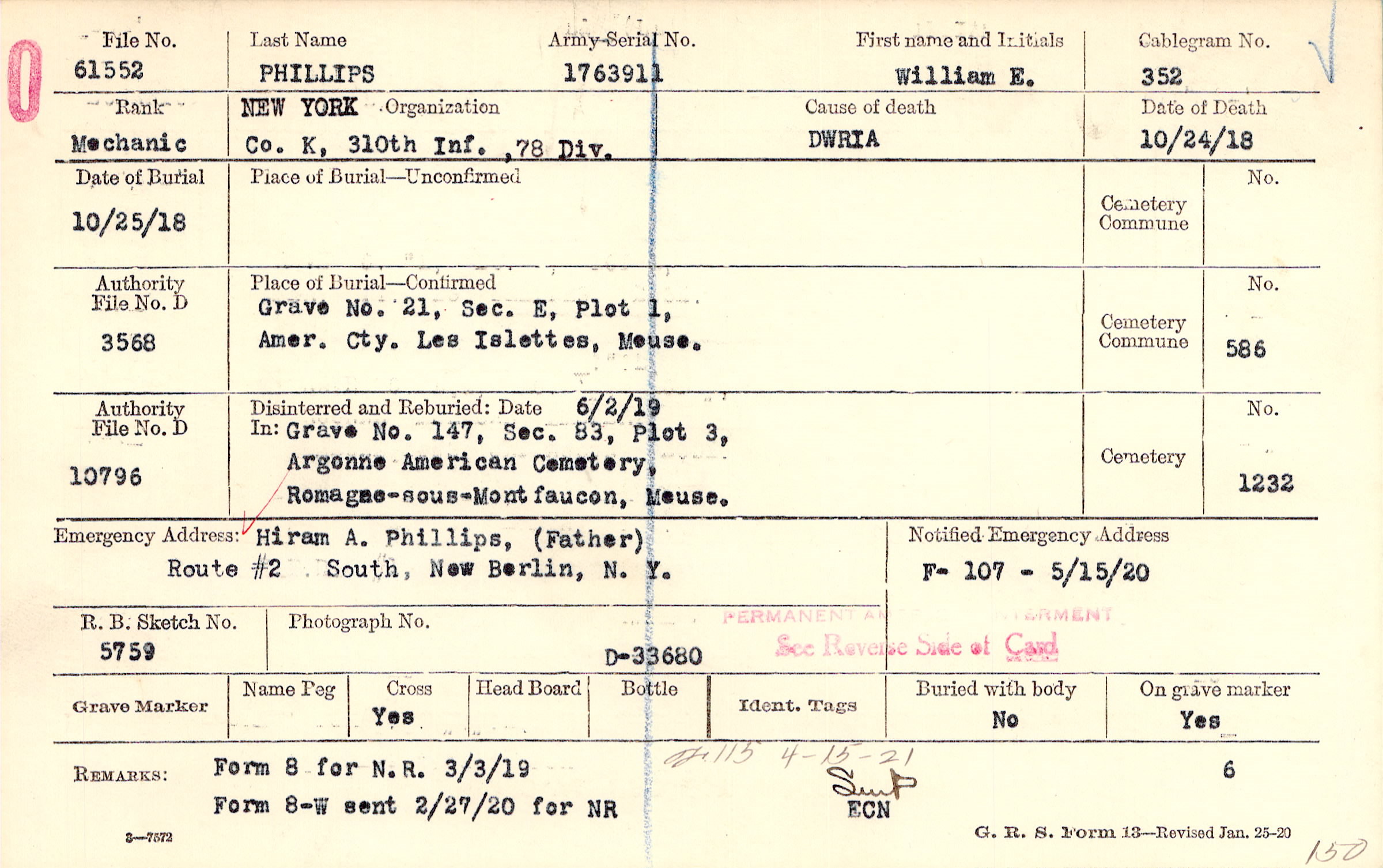 Grave 21, Sec. E, Plot 1, Amer. Cty., Les Islettes, Meuse.